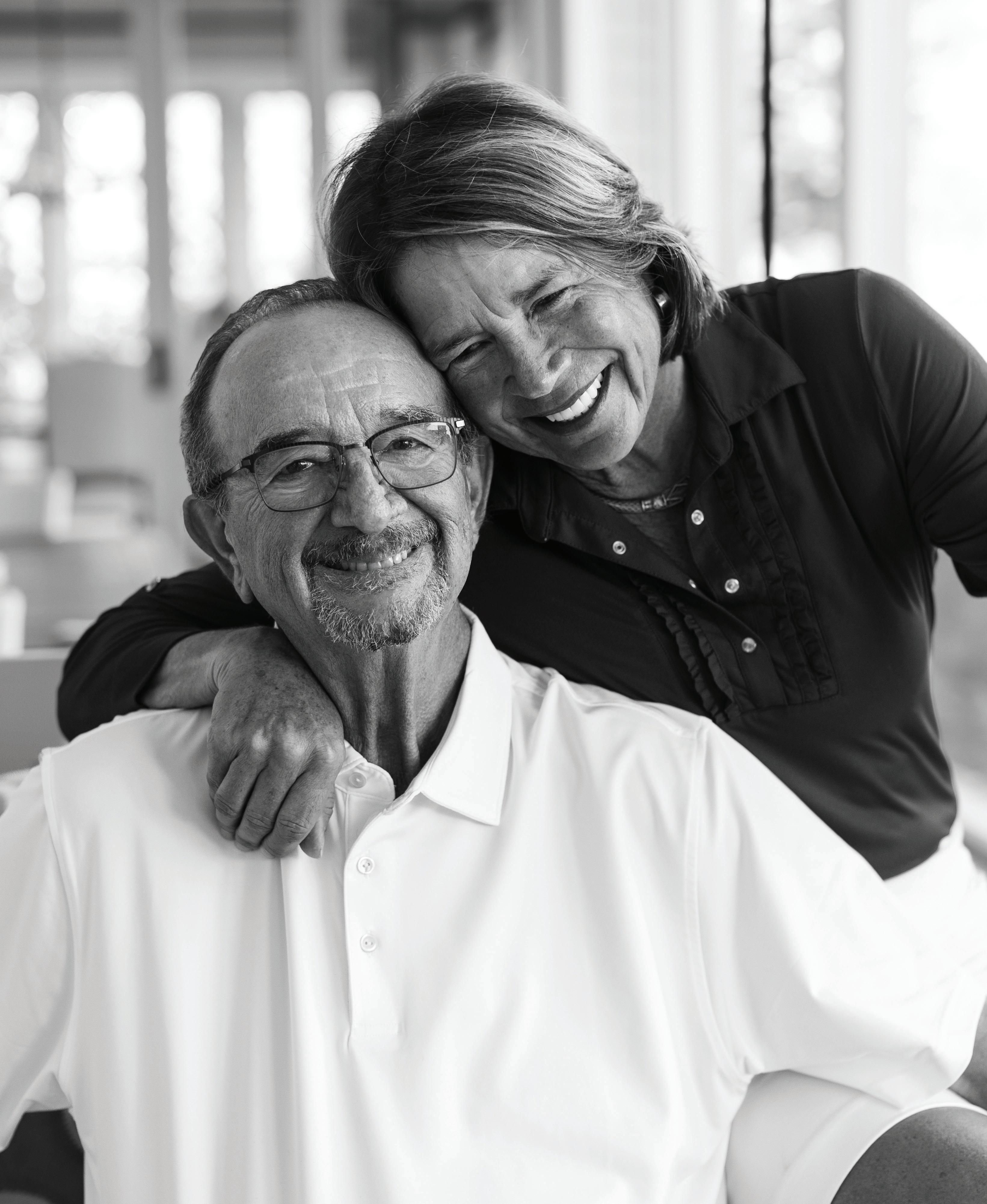 Dan: I was introduced to Rhonda and her husband, John, to do some consulting work with their company. We got along great and went to dinner every quarter. When John died, I got a message from Rhonda that she wanted me to come to the funeral. But I was in Alaska with my sons and couldn’t get there. I invited her to lunch instead. She was a mess, and I wasn’t sure if I’d ever see her again after that. And then one Sunday she called and said, Dan, do you play racquetball? Well, I’m eighty now, but I come from the era when girls didn’t play anything other than field hockey. She beat the stuffing out of me, I tell you. And all of a sudden, I started thinking romantically about her, I had never met anybody like that.