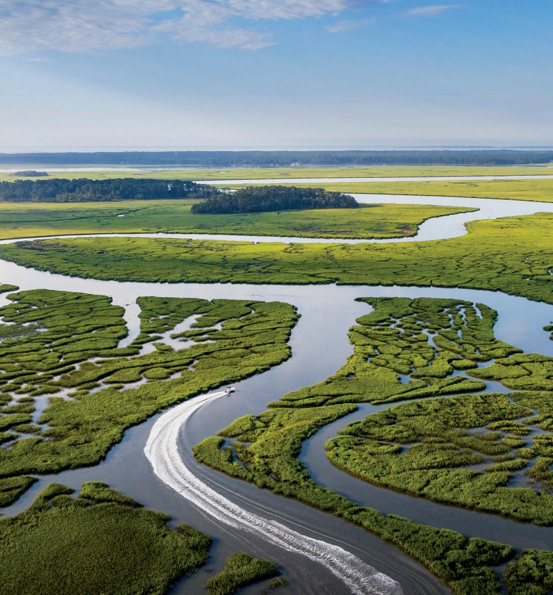 There are moments at Palmetto Bluff when nature reminds us of its mystery. This sense of wonder is not something we have to imagine or manufacture; it’s already here, moving through the water, trees, and sky. I was reminded of this on a fall morning out on the May River with the Semeraro family and Captain Boo Harrell for “Close Encounters” (pg. 40). We were surrounded—pods of dolphins surfacing and diving alongside the boat, pelicans and shorebirds overhead, the air alive with motion and sound. It felt less like observing wildlife and more like being briefly invited into it. These encounters are increasingly uncommon in the world, yet here they remain part of everyday life.