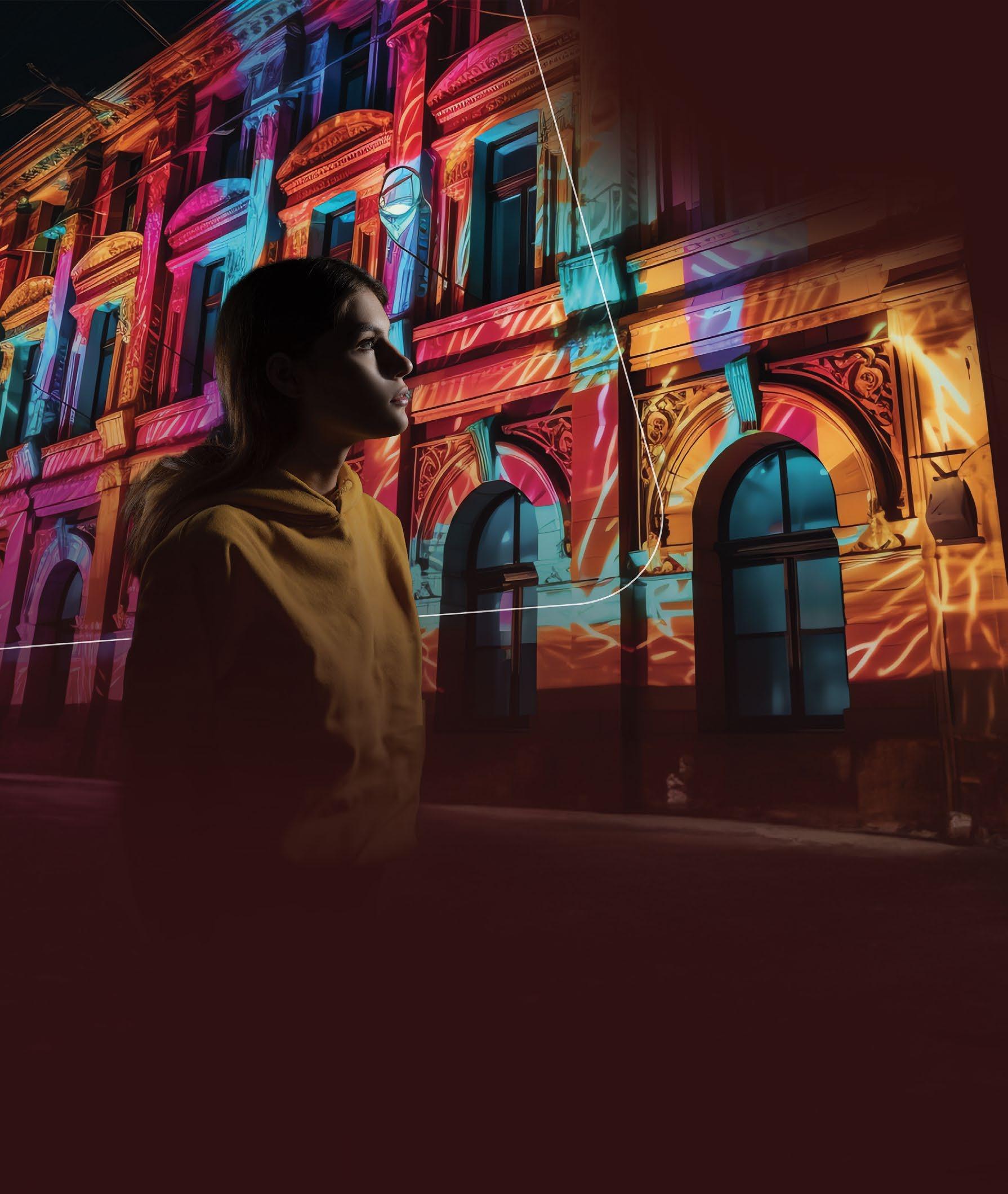 screens in the auditorium. These screens boast a size of 7040×2720, ensuring optimal visibility for presentations, lectures, and cultural events. The product provides 1200 nits brightness, and 3840 Hz refresh for smoother pictures. Additionally, it can be curved up to 0°,2.5°, and 5°, making concave and convex orientation for visually appealing, versatile, and engaging display setups.
