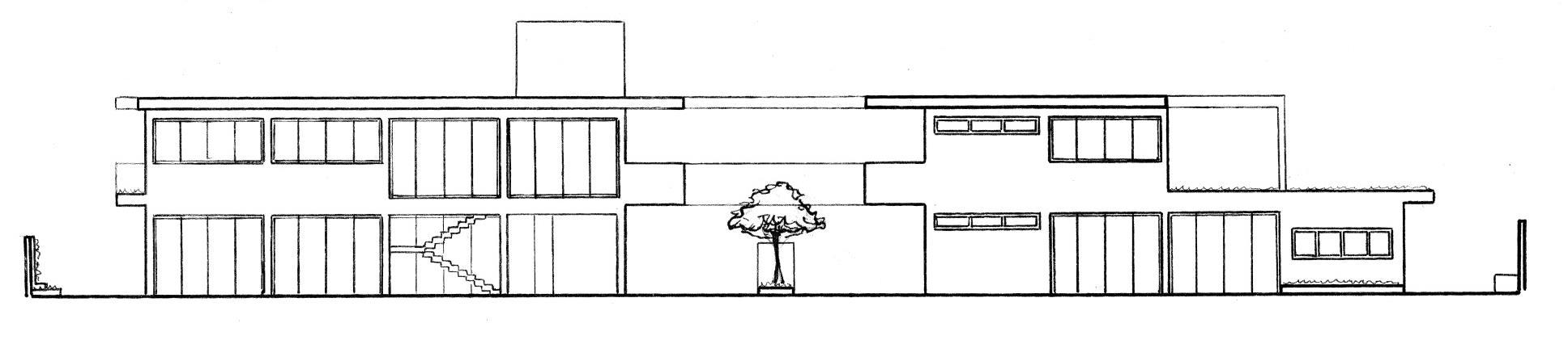 Regarding the site, the project is located on a sloping land, the back of which is an inaccessible street but with great potential to create a path. With that in mind, the section is designed to expand circulation with Avenida Corifeu through a ramp-staircase that gives access to the educational institution and also allows visits to the bike rack and the collective balconies of the standard floors.