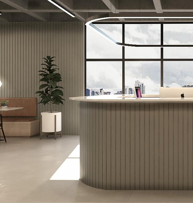 Como um exemplo da área da saúde, uma imagem de um consultório de endocrinologia, onde a cli ente queria algo clim que trouxesse uma sensação de calma e conforto.