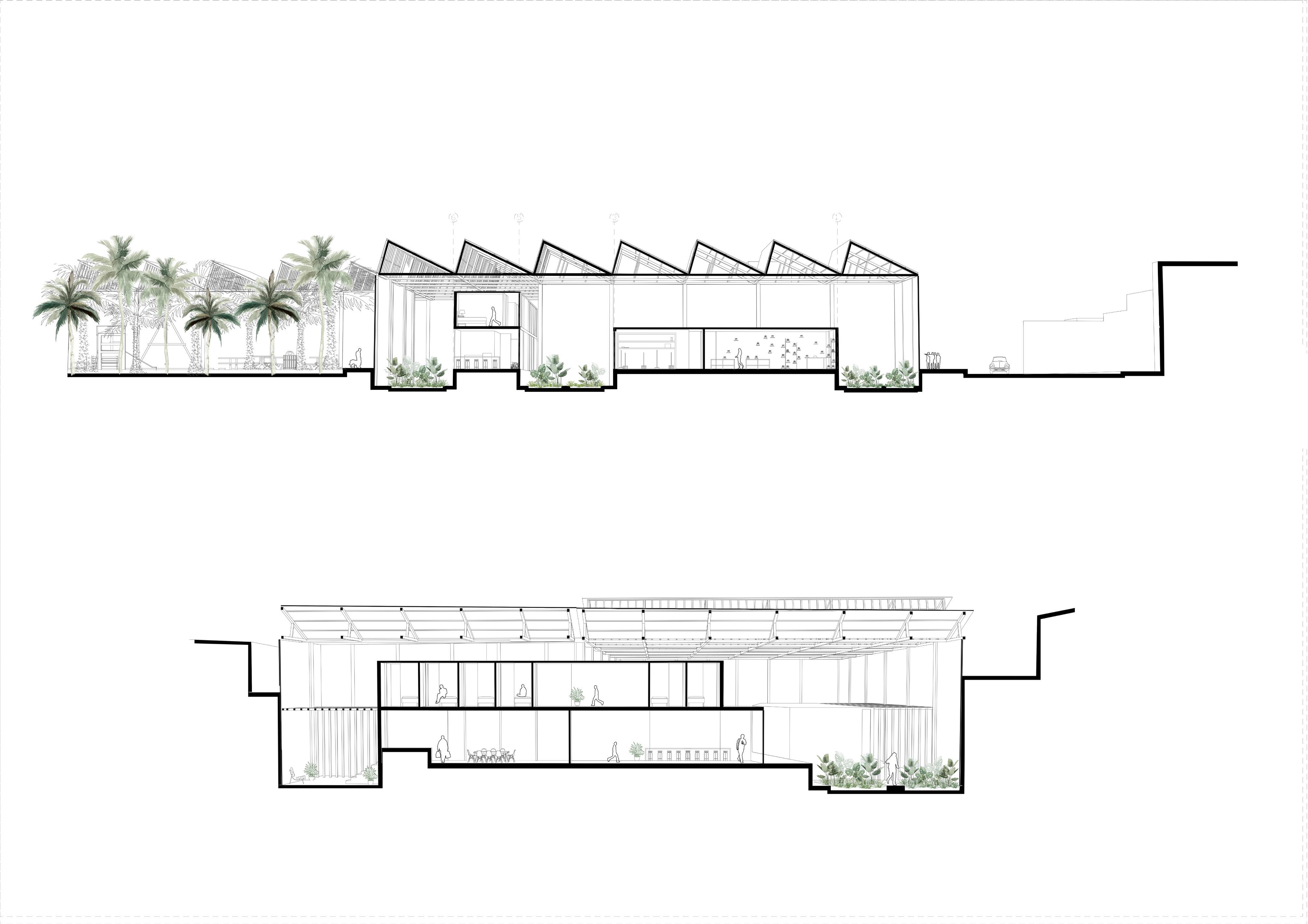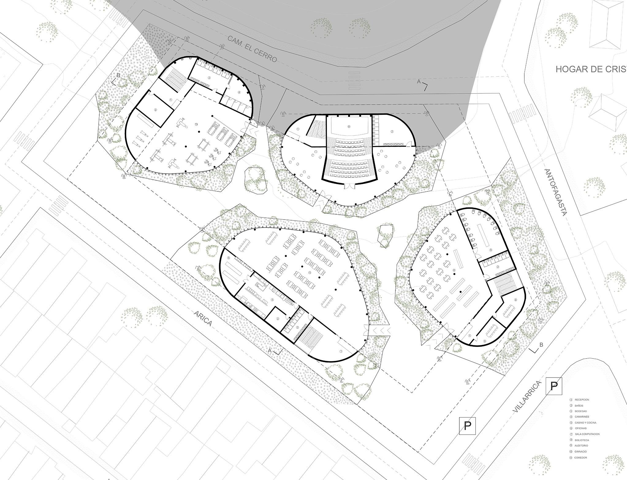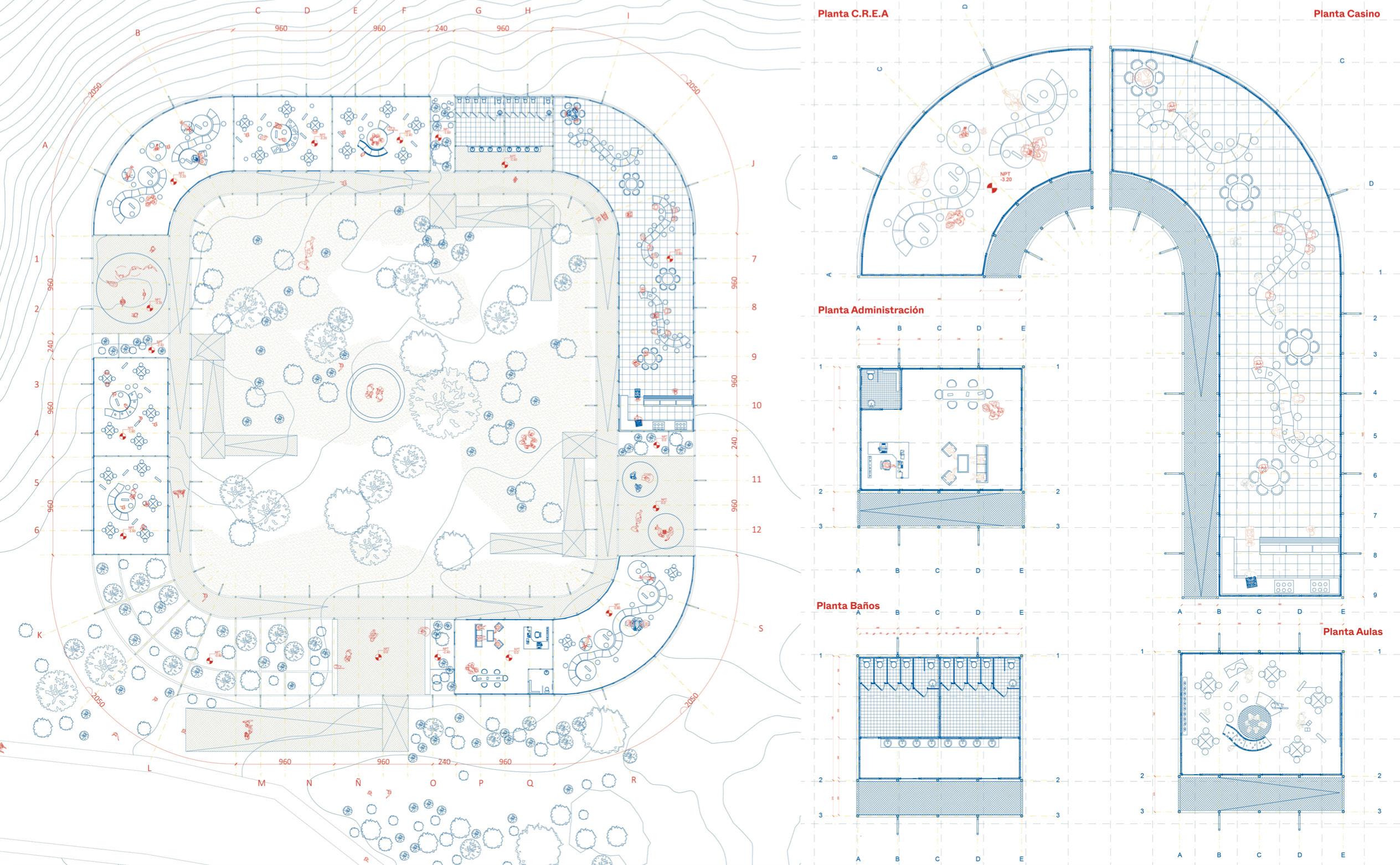 Los modulos públicos buscan tener programas asociados a las problemáticas exteriores, que aporten a la cohesión social y permitan abrir el espacio para mejor conectividad. El proyecto se separa en nucleos públicos que pueden ser usados por las comunidades y el espacio de enseñanza privado.