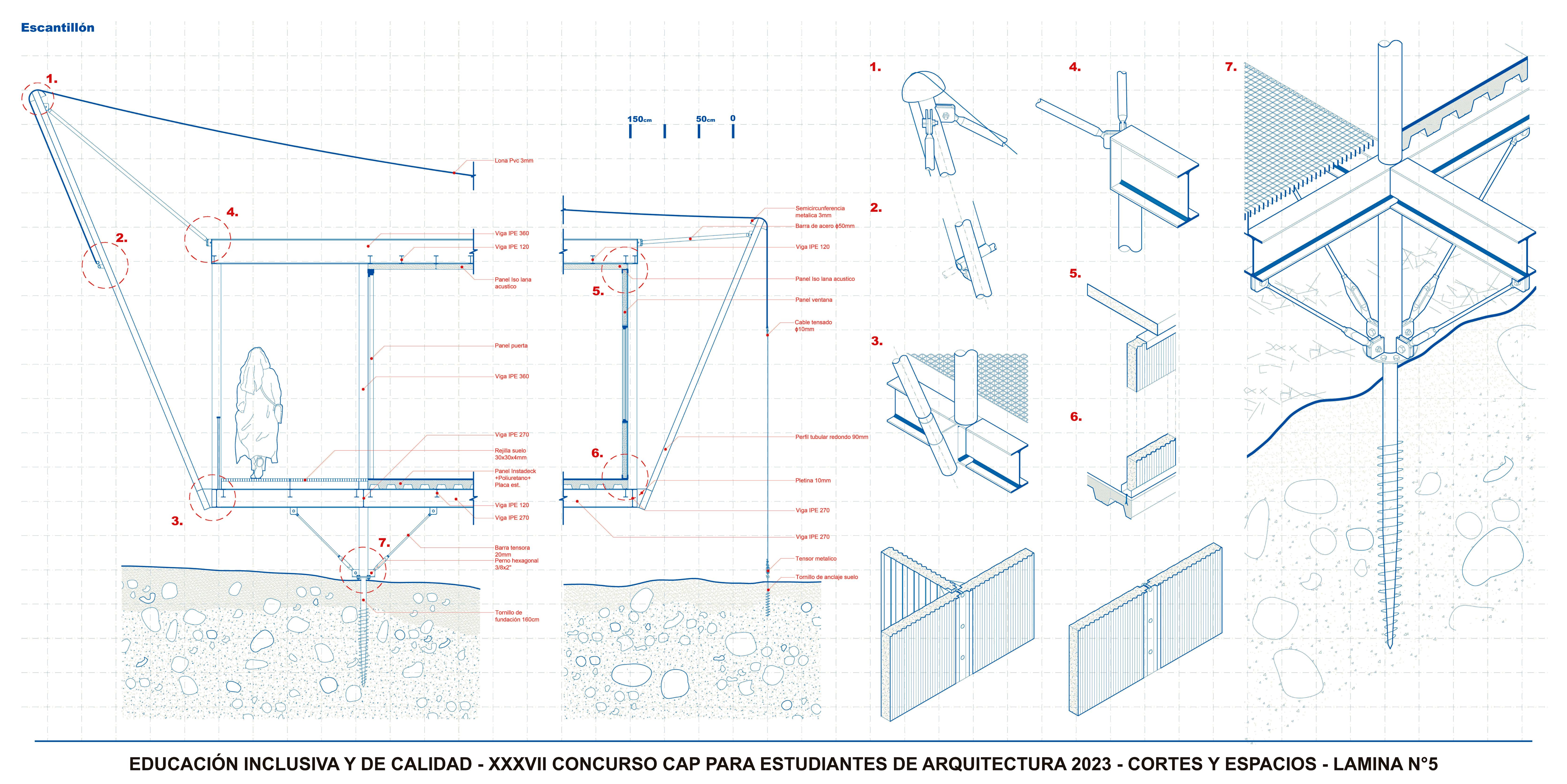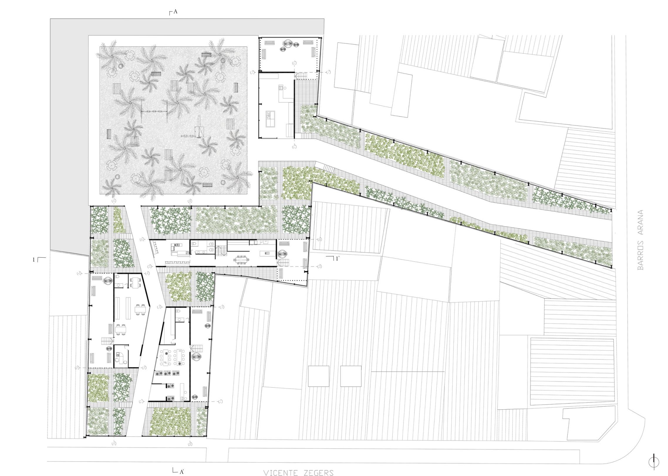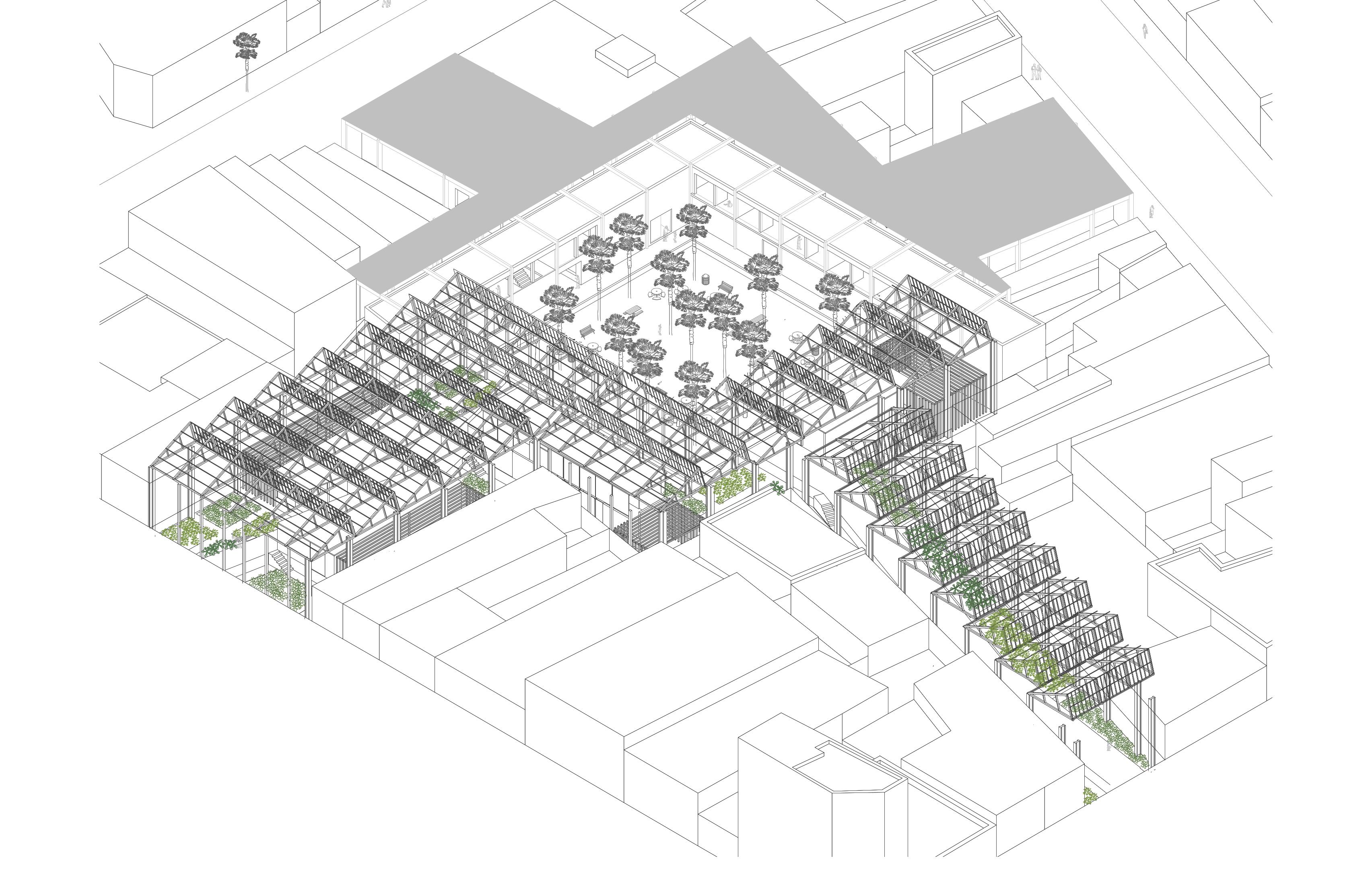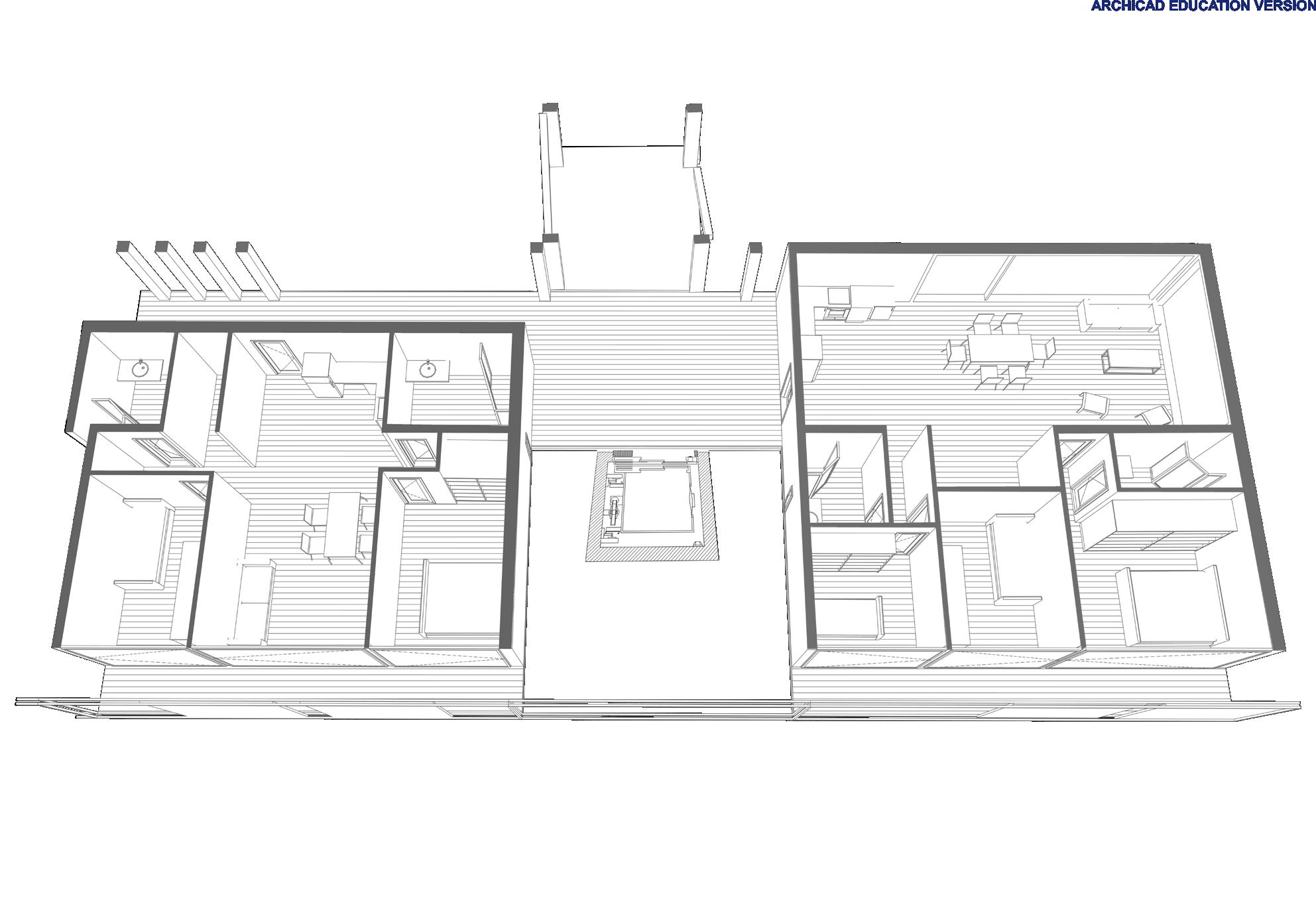 Los modulos públicos buscan tener programas asociados a las problemáticas exteriores, que aporten a la cohesión social y permitan abrir el espacio para mejor conectividad. El proyecto se separa en nucleos públicos que pueden ser usados por las comunidades y el espacio de enseñanza privado.