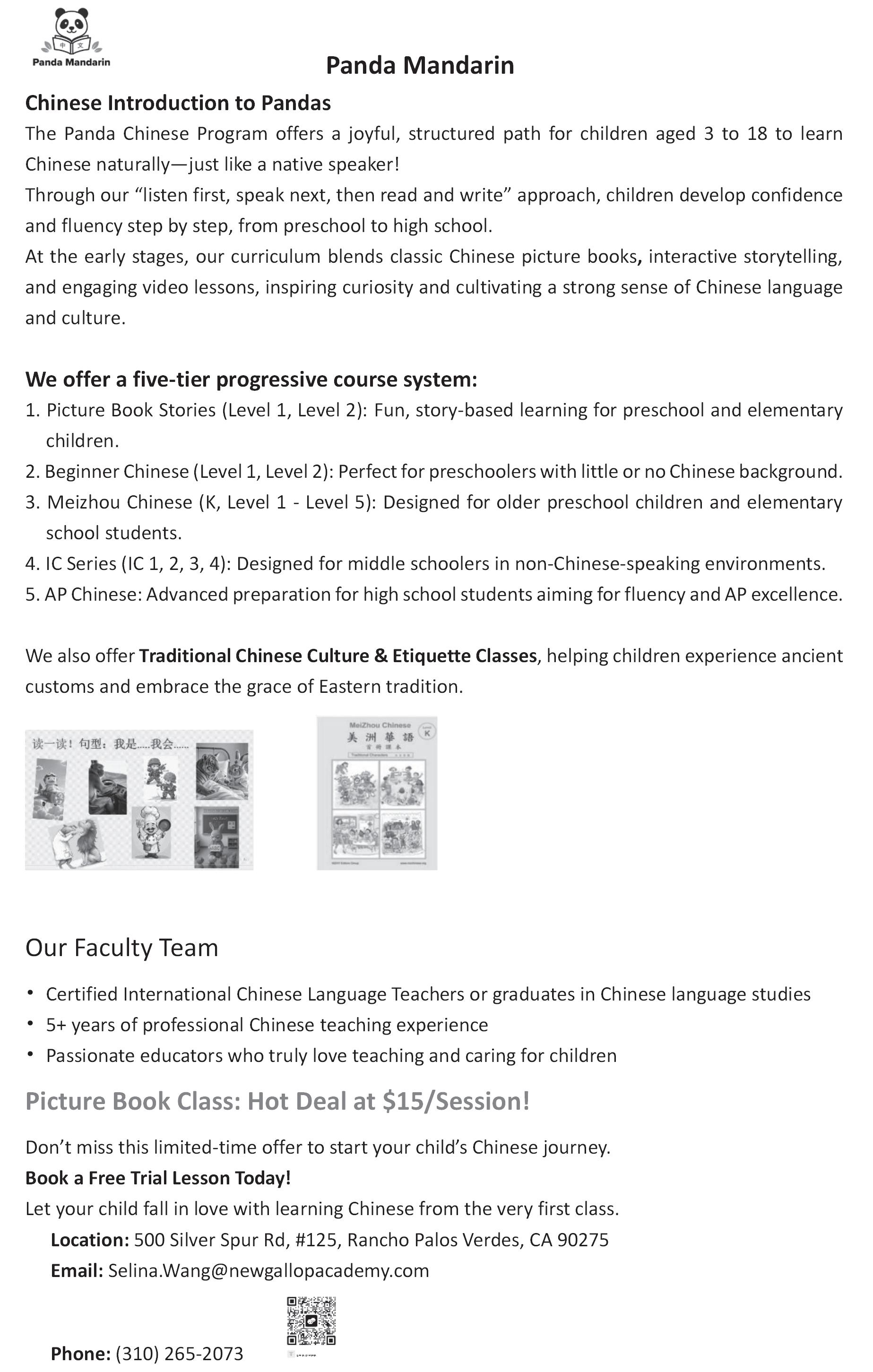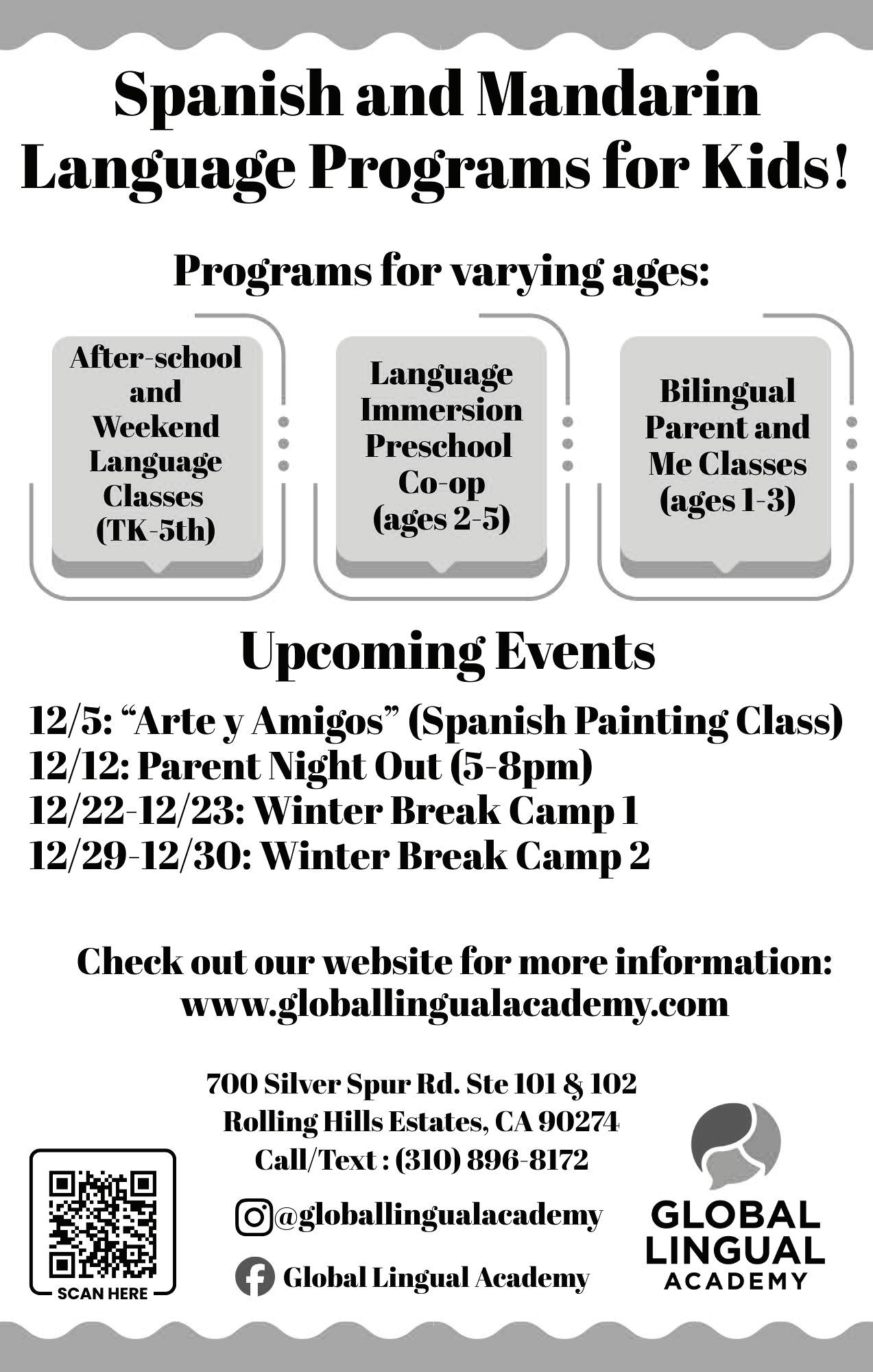 For more information or to reserve a spot, scan QR code. PO Box 4752, Palos Verdes Peninsula, CA 90274