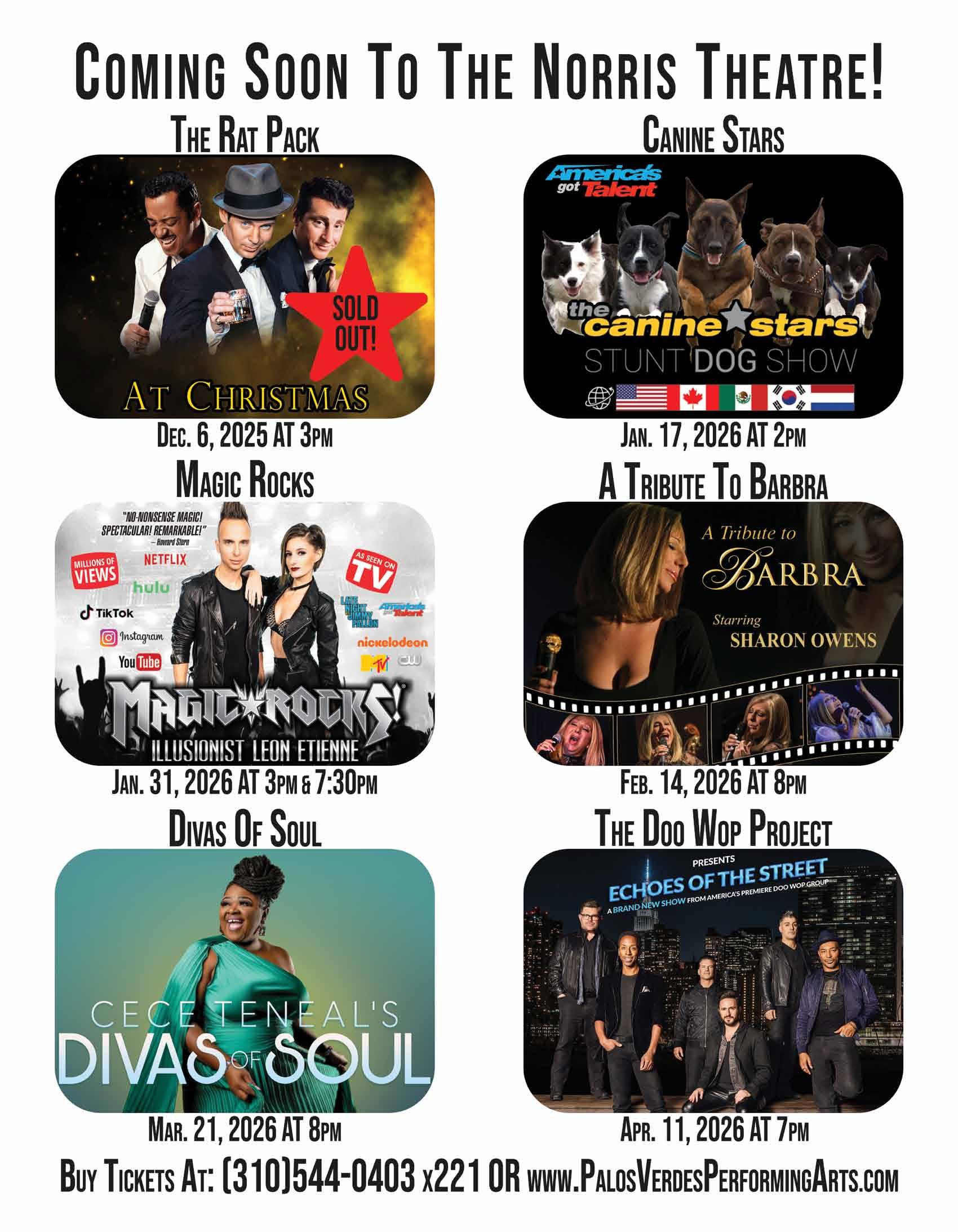 Join us for enchanting performances that have delighted audiences for 45 years, as we mark this special milestone in bringing holiday joy to all. Performances Dec. 20 at 7pm, Dec. 21 at 1pm and 5pm. For tickets contact Norris Theater Box Office (310) 544-0403 ext. 221
