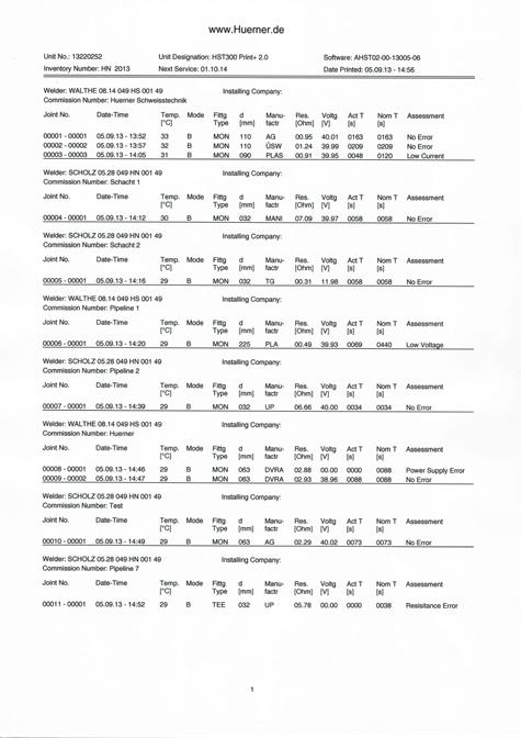 Alle modeller med datalogging kan kobles til skriver med termoetiketter. Glem tusjen! Etiketten inneholder et sammendrag som enkelt festes på muffen eller røret.