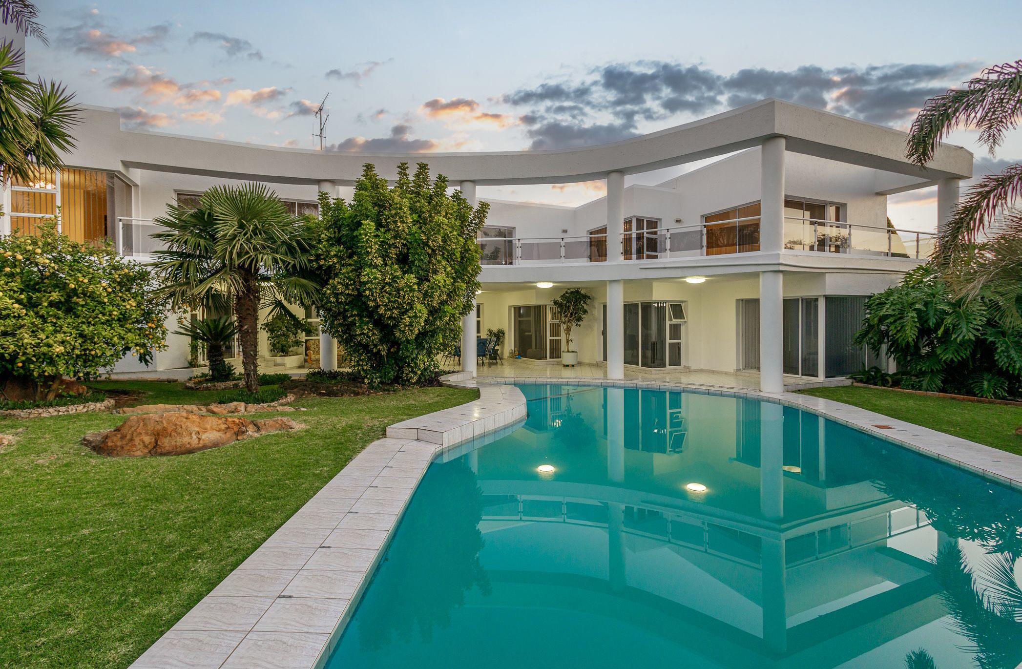 Welcome to the epitome of Mediterranean-inspired luxury living at its finest in the exclusive enclave of Dainfern Ridge. This exquisite single-story 4-bedroom home encapsulates the allure of timeless architectural design, seamlessly blending elegance with modern comforts. Nestled within a meticulously landscaped oasis, this home boasts a a plethora of exceptional features that will captivate even the most discerning homeowner. Step outside into your private paradise, where a sparkling rim flow pool beckons you to indulge in refreshing dips and bask in the sundrenched ambiance.