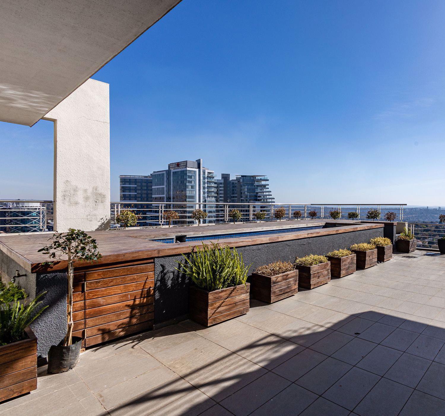 Totally private & very secure unfurnished Penthouse with an enormous entertainment patio and deck with a good length swimming pool. Lovely views from every angle. The vast spaces are perfect for easy entertainment with plenty of space for the children to play. Set in the very heart of Melrose Arch. Grand entrance leads into 310sq meters of vast open plan living spaces with an exquisite newly fitted open plan kitchen, fully integrated with top of the range appliances. Truly a Chef’s delight. Patios on both sides with stacking doors creates the perfect in-door outdoor flow. Tall windows allow for light to flood in throughout.