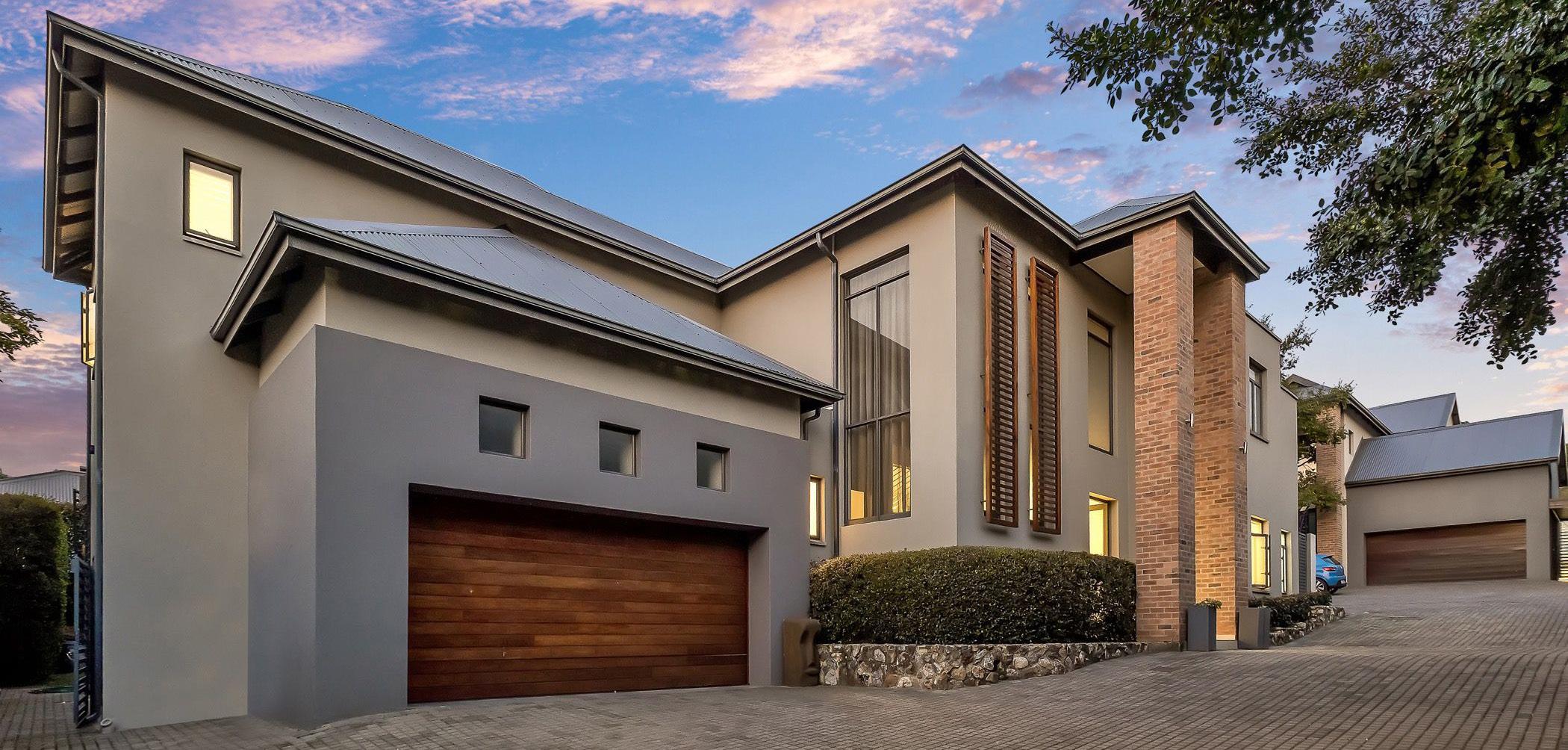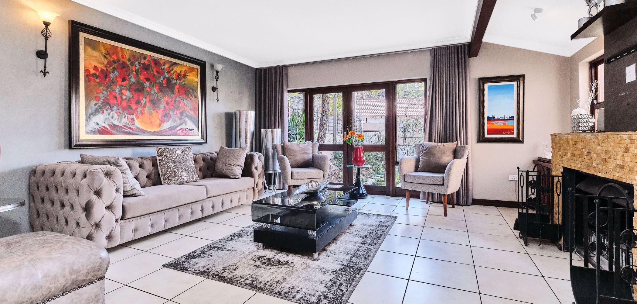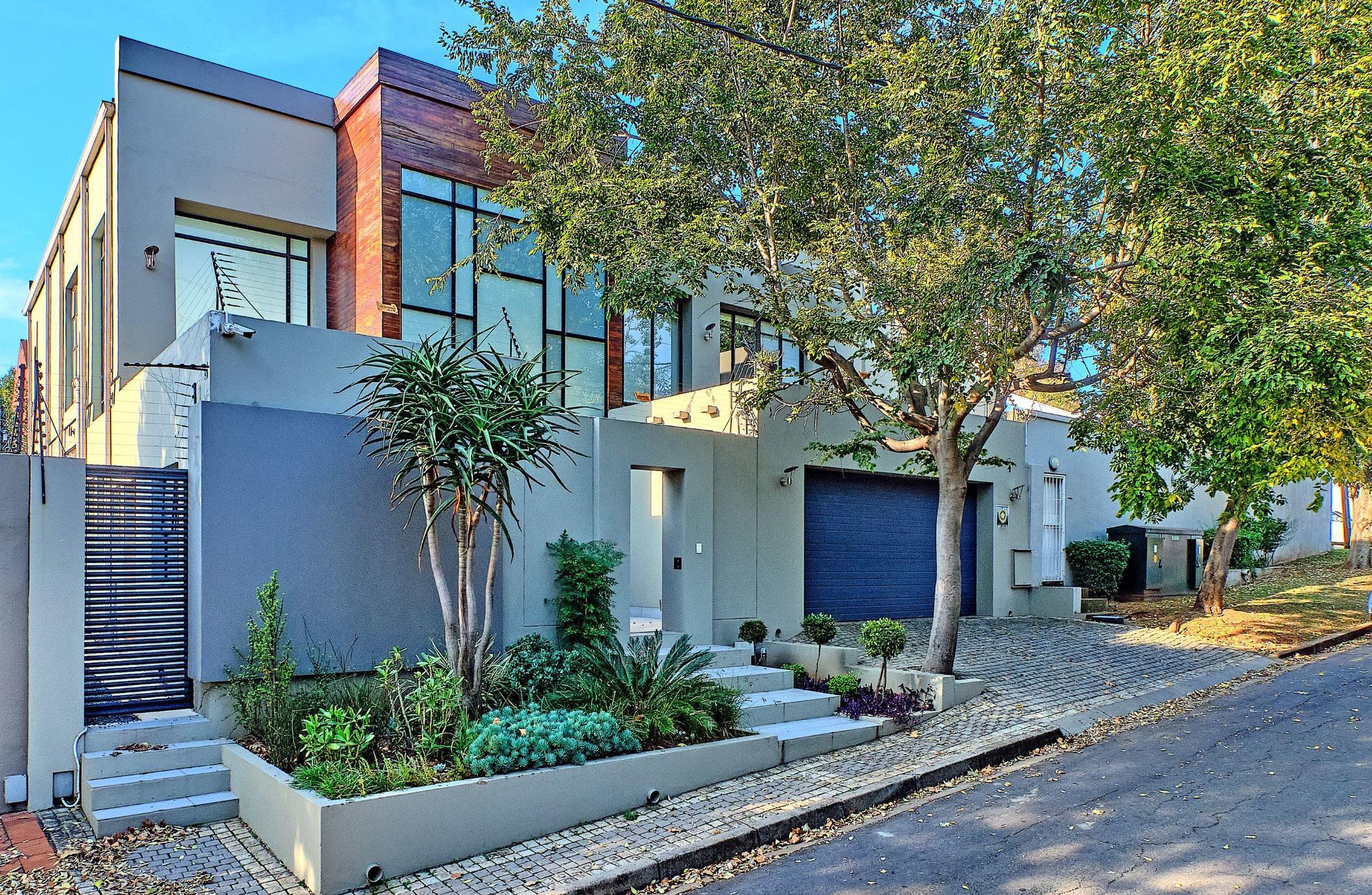 Exquisite home of distinction for the executive family seeking elegance, subtle sophistication and a contemporary lifestyle in an elite complex of 3 properties. Open plan living at its best, large abundant windows & doors, with sleek, clean lines showcasing the amazing space this home offers. The imposing triple-volume portico draws one into the glass front door, leading to the open-plan living rooms. The seamless flow of the house marries the reception rooms to the covered braai terrace, beautifully manicured indigenous garden and wood-decked pool beyond.