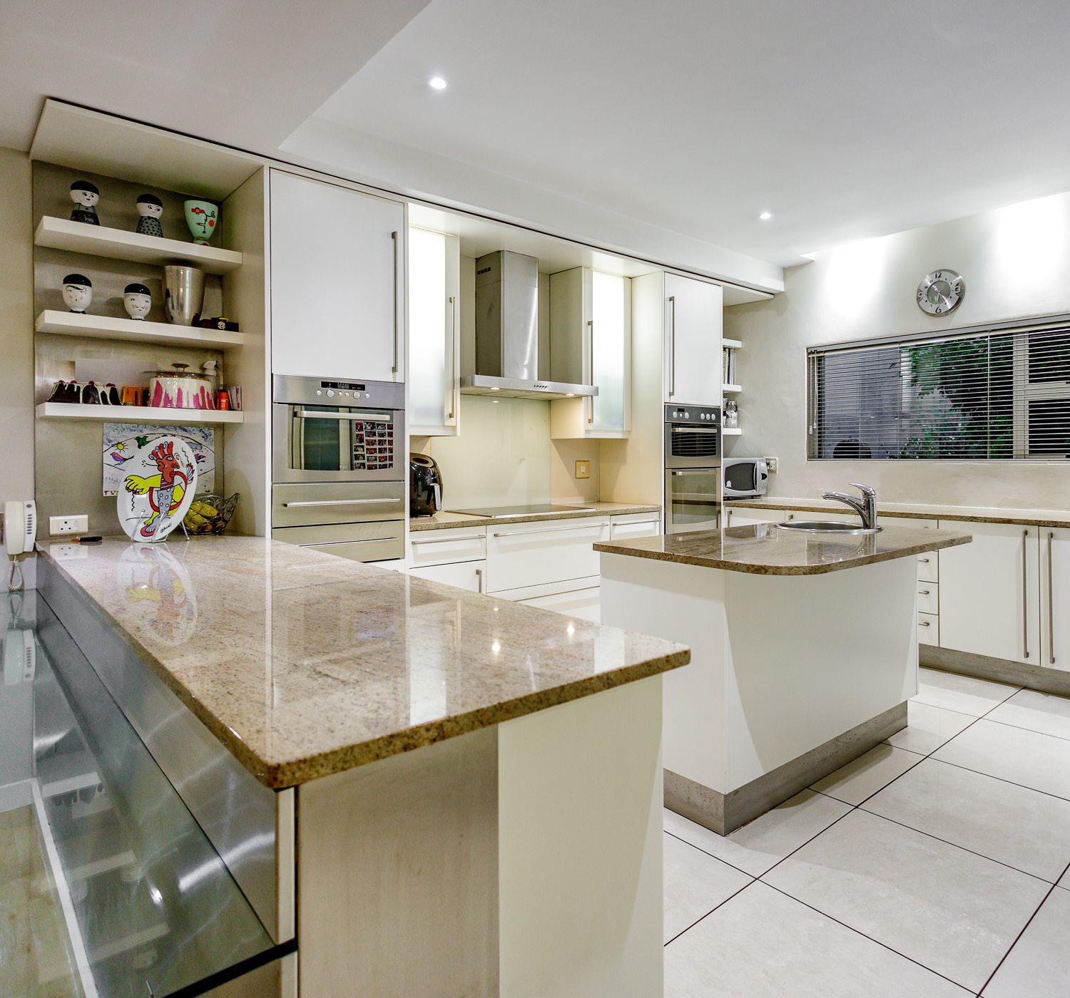 This stylish home offers superb accommodation for the discerning tenant. A wide open and welcoming double-volume entrance hall leads to light and airy living areas. The Shuco aluminum concertina doors offer a seamless flow between the lounge and bar area onto the patio and pool, creating a serene and comfortable zone. The gourmet kitchen with center isle and sublime finishes features Caesar stone countertops, a gas hob, an eye-level oven and a fitted microwave. A sweeping staircase leads up to the beautiful bedrooms, all with luxurious en-suite bathrooms. The elegantly finished landing leads to an open area that can be used as a pajama lounge/ study area or gym.