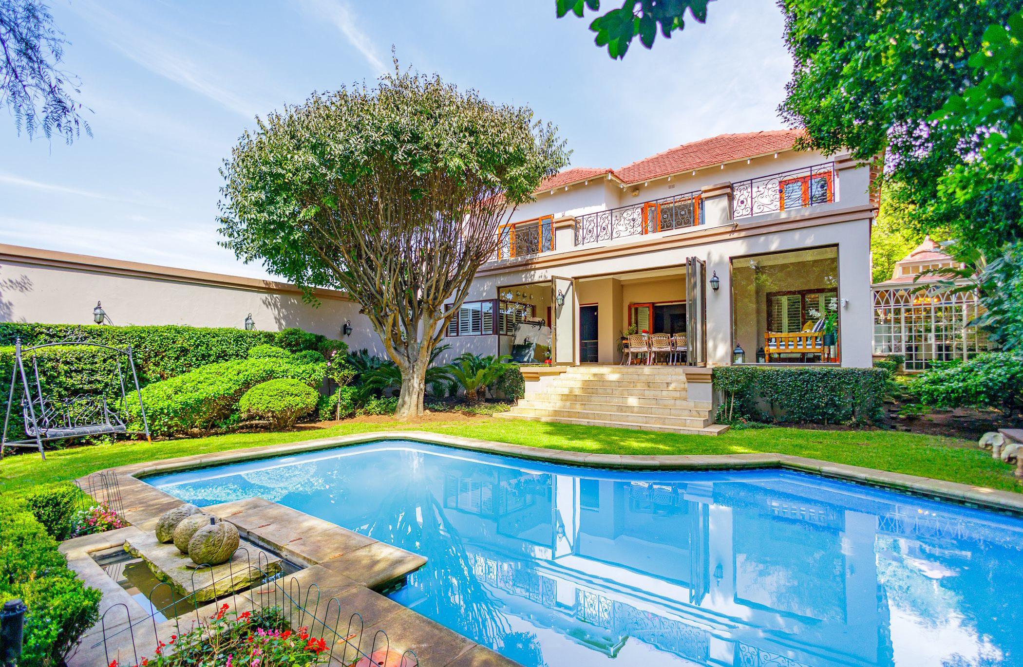 With an imposing stature, hidden amongst the trees and tucked away on a tree-lined street, this gorgeous property offers vast space for a young family looking to find the perfect home in the sought-after Greenside. This stylish home exudes charm and character in a contemporary setting and the mix of old and new is done to perfection. Charm and character aplenty with gleaming wood floors, stained glass windows, pressed ceilings and contemporary finishes and amenities featuring American shutters, thoughtful lighting and design create a stylish space for the modern homeowner.