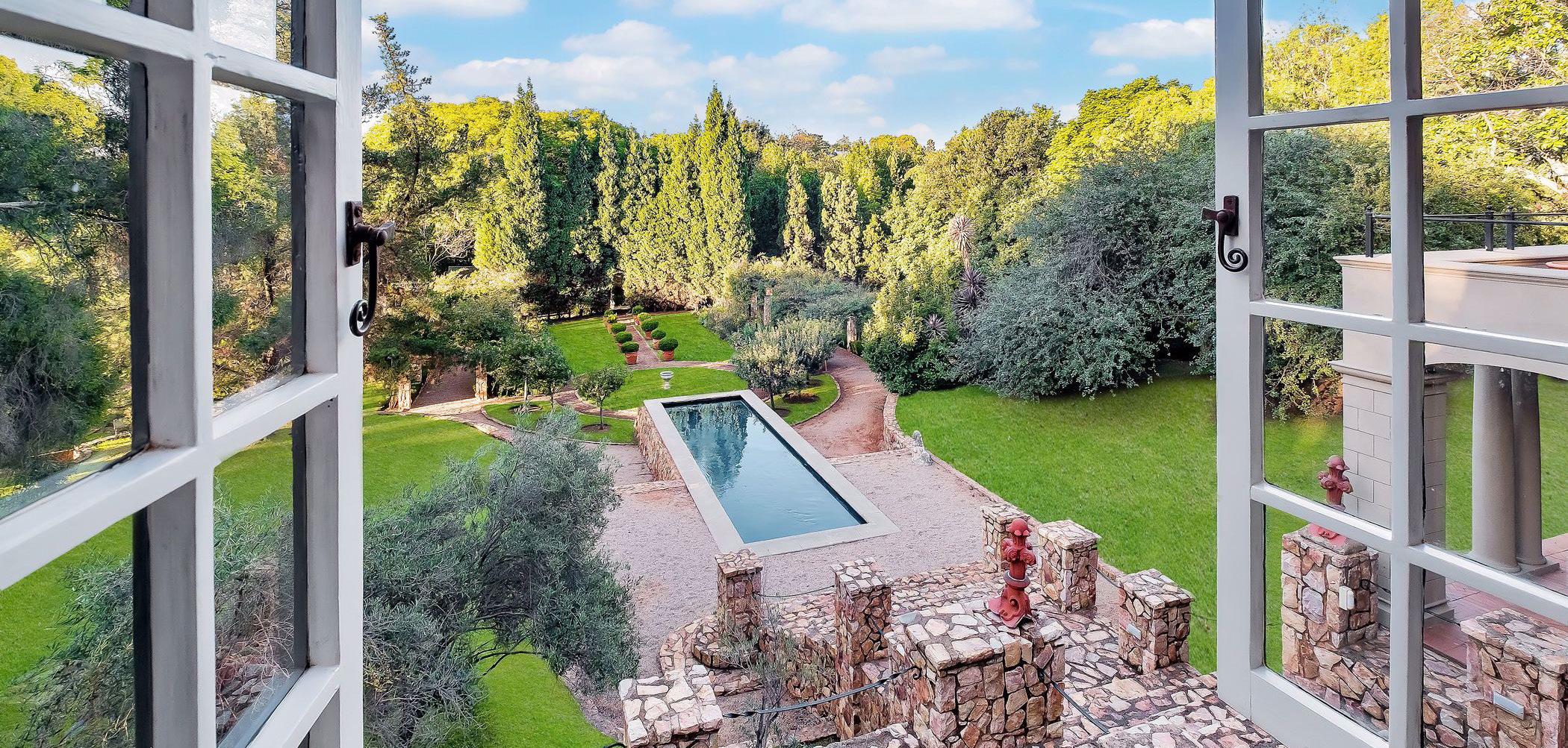 Enjoy refined European living and design in a tribute to elegance and sophistication, with incredible views. With the backdrop of Melville Koppies, nestled in the mountain, and situated on the most sought-after location in boomed-off Emmarentia Ridge, this beautiful home offers an entertainer’s paradise all year round. The reception areas boast a perfect synergy of space and light, including an open-plan lounge with a feature fireplace, and dining room which flows with ease onto a sumptuous entertainment area overlooking the pool and garden and set against the backdrop of the northern Johannesburg skyline.