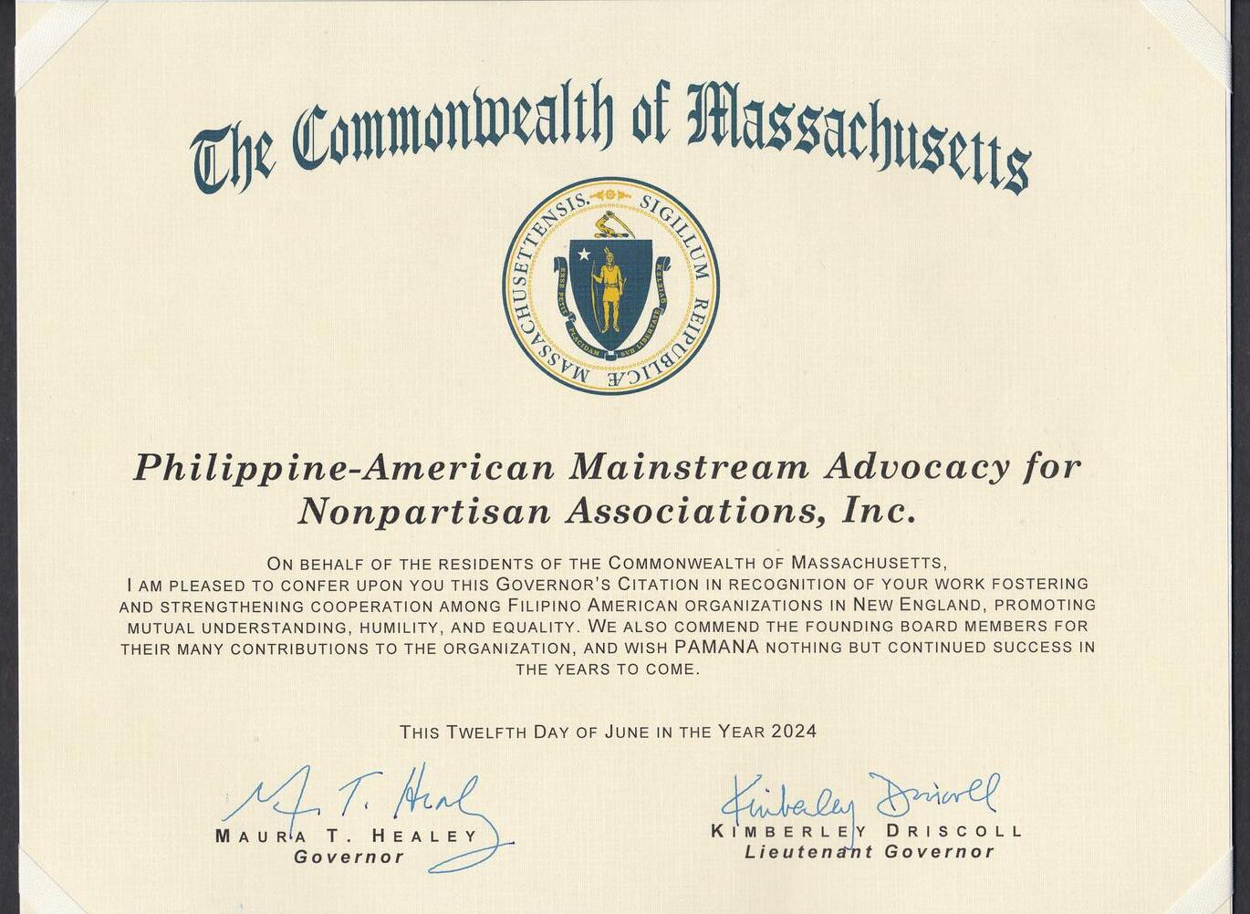Philippine American Mainstream Advocacy for Nonpartisan Associations, Inc , also known as PAMANA, celebrates its 26th anniversary this year. We are proud to continue and build upon the traditions started by the generations of leadership in the Filipino community of New England that came before us, including: