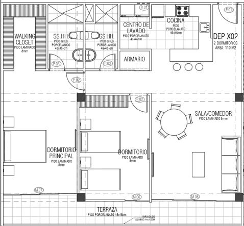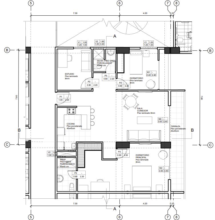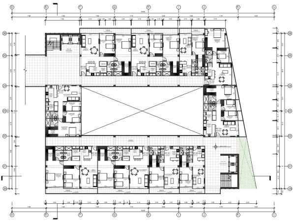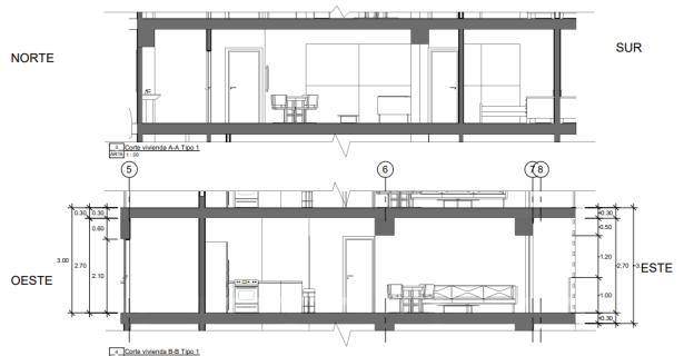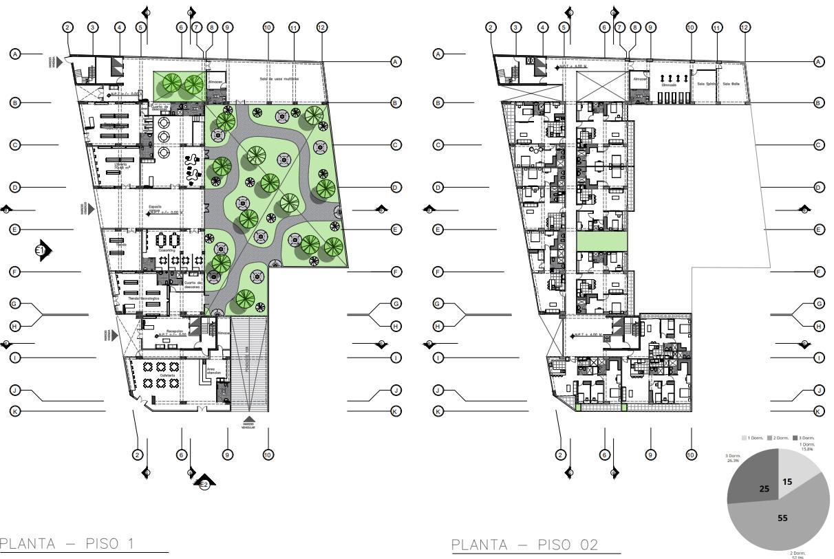 El sector de vivienda cuenta con reas de recreacin en el prier nivel y con 2 tipos de departaentos buscando responder las principales necesidades del usuario