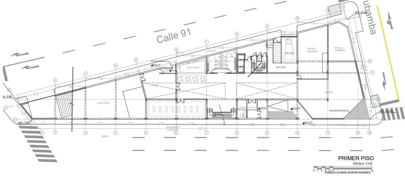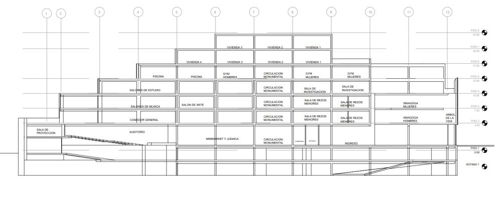 El proyecto consisti en un centro religioso judo, un lugar social y de culto en el que se busca acoger a 350 personas creyentes del judaso. Esta edificacin cuenta con diversas reas para el desarrollo fsico, ental y espiritual de los usuarios. Brindando un rea religiosa principal (Sinagoga) coo eje fundaental de esta edificacin.