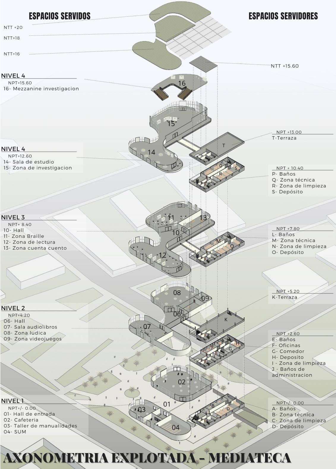Esta ediateca se eplaza en Pachacaac teniendo coo pblico objetivo a los nios y adolescentes con concepto de coneion de flujos a traves de curvas.