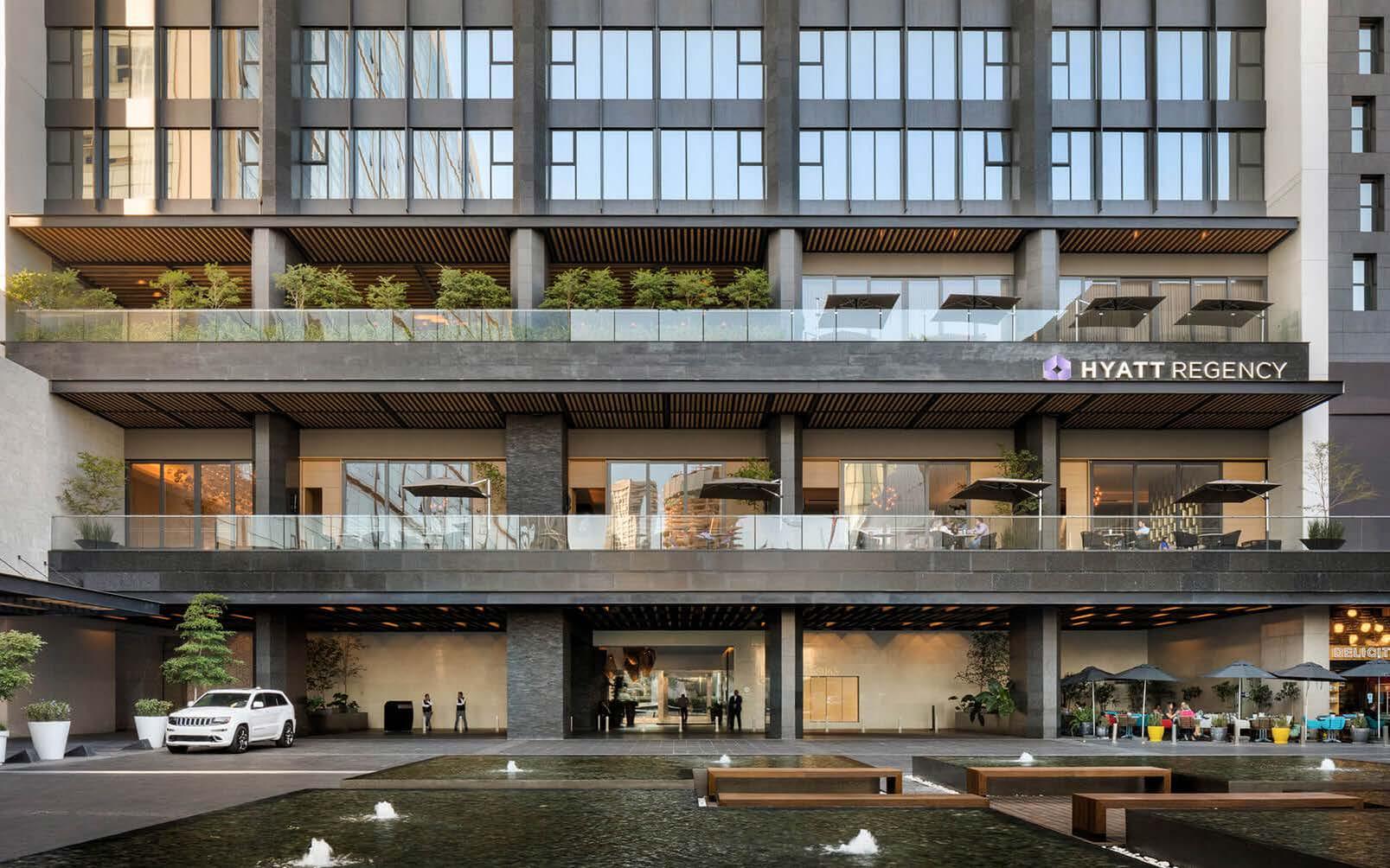 The Hyatt Regency Andares stands as a 41-story landmark, rising 173 meters above street level. It forms a visual and spatial anchor for Paseo Andares, an interior street serving the complex’s varied uses and complementing the city’s layout.