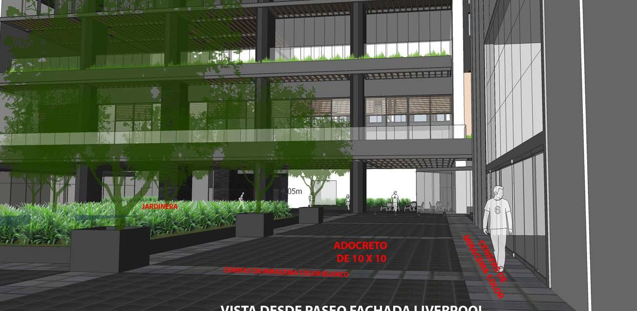 Key components of the project include a hotel, offices, a mall, a gourmet market, parking and vertical circulation elements, all harmoniously integrated to create
