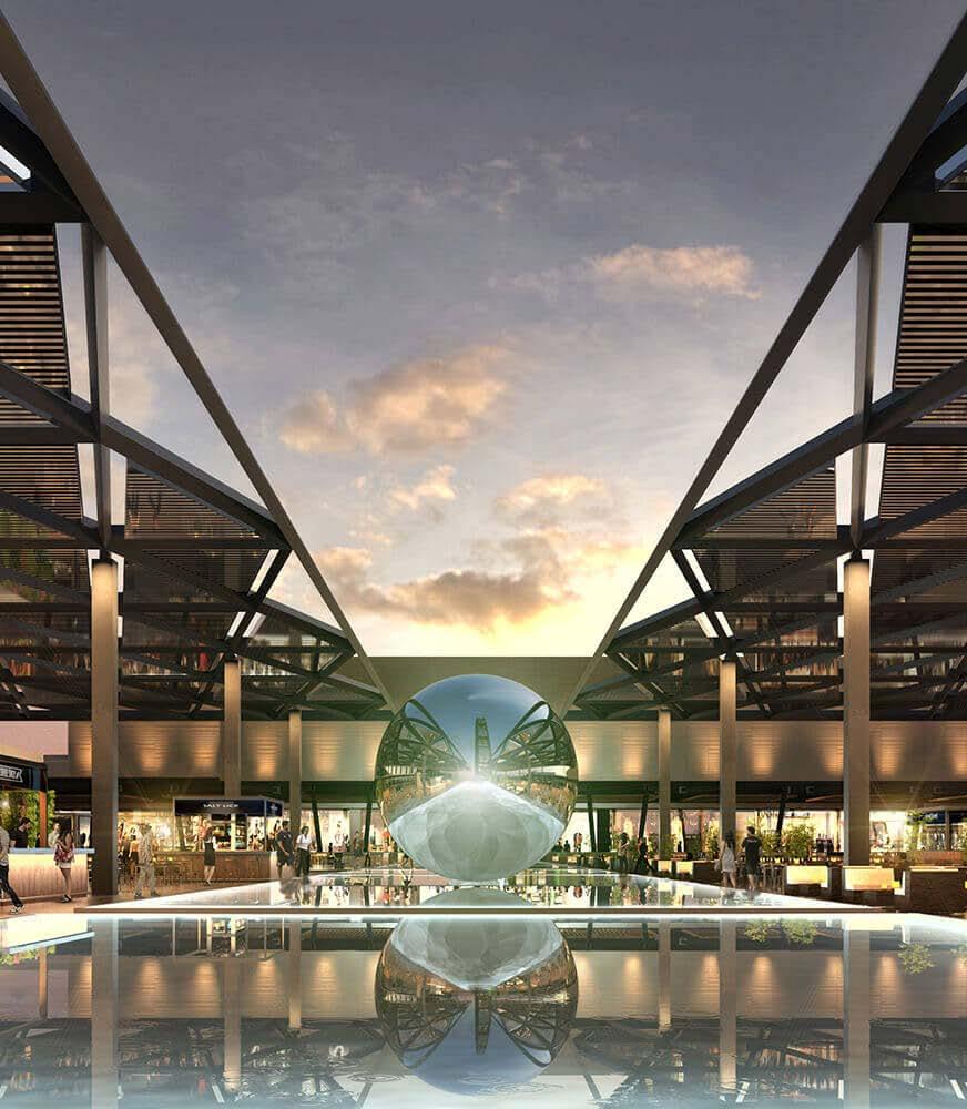 market, a cinema, landscaped areas with water features, a flagship store, underground create a dynamic urban environment.