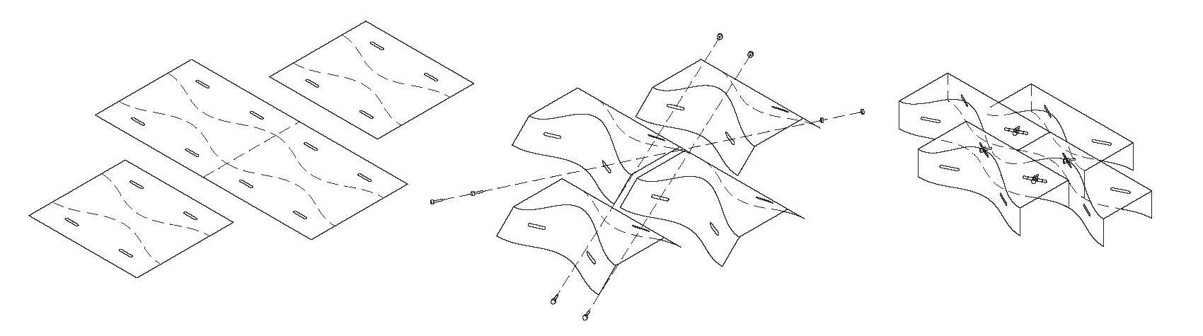 This project is commited by a client in Shanghai, aiming to build a parametric fabrication on a wall. Our team wanted to begin with an interesting unit. By studying each parameters' property, we design suitable joint to connect all units forming a good surface.