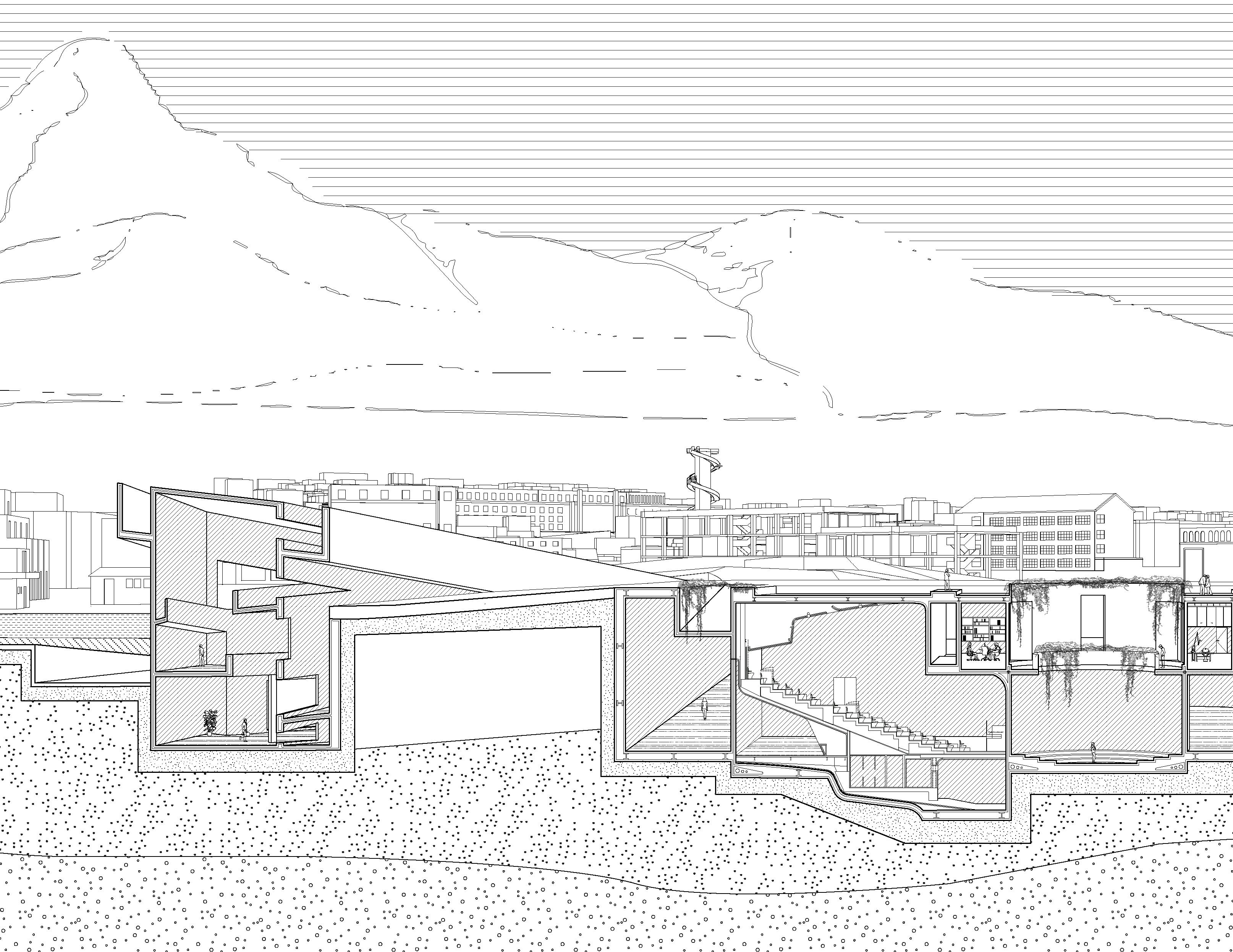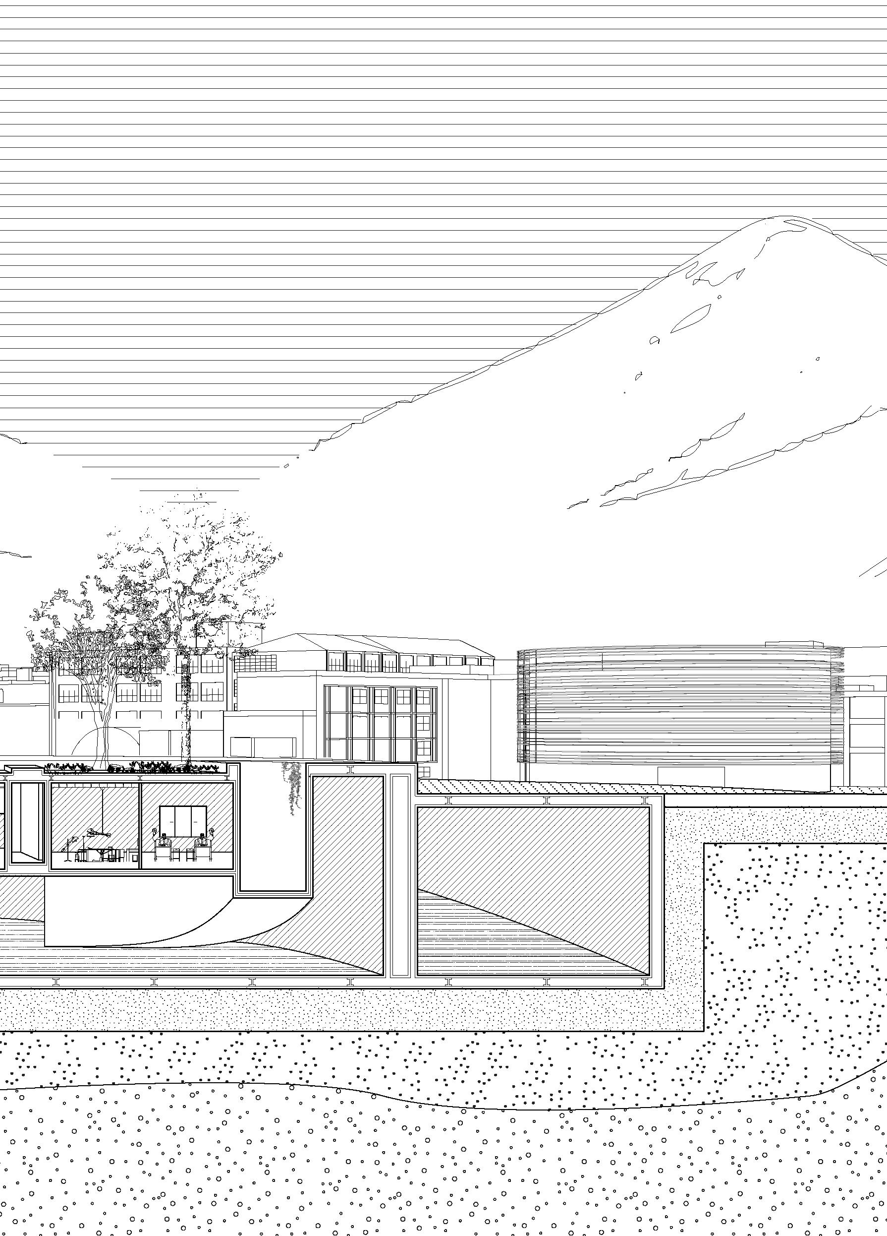 A series of underground or semi underground chambers and rooms carved into the landscape, exploring the realtionship between the ground and buildings. This site is historically meaningful to Koreans. In order to respect the site and leave the access to public as much as possible, a lot of things would happen underground.