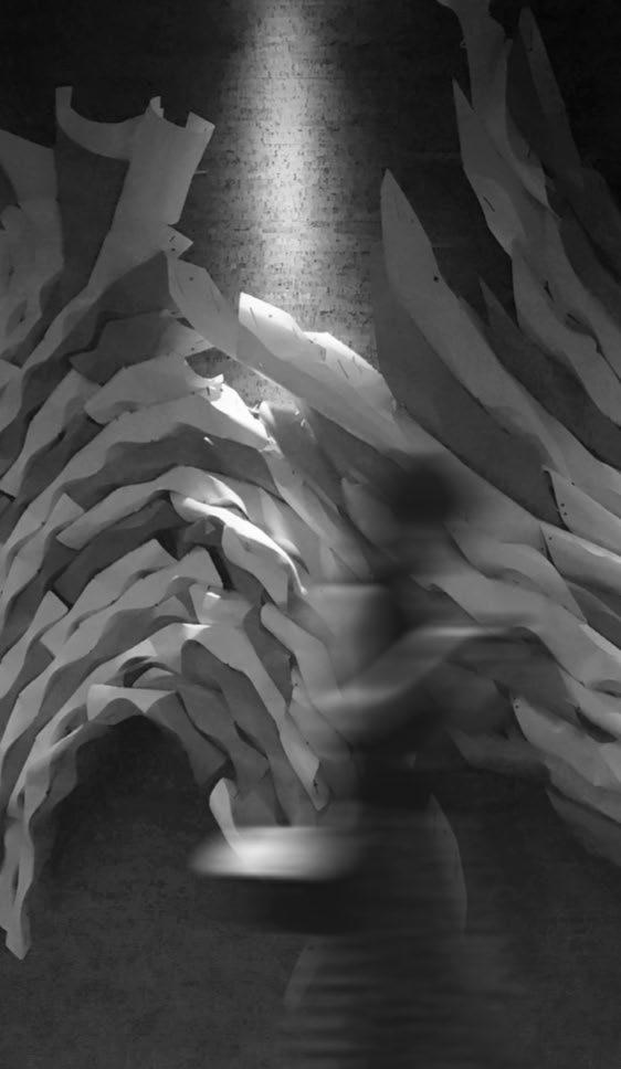 Two different components were born when we cutting one piece of paper. Emerging artists and seniors are like 2 dierent components that are from the same place. They seperate and go through dierent ways, even mimic each other. When they merge together, a third space is born, which serves both of them.