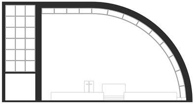 1 bell tower 2 entrance 3 holy water font 4 choir 5 main church 6 chancel 7 father only 8 preyer rooms 9 meeting rooms 10 kitchen 11 courtyard 12 chapel Ground Floor Plan Plan 1 2 3 5 4 6 7 8 9 10 11 12