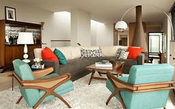 Muebles inspirados entre los años 50 y 70 pero creados en la actualidad Entre los 60 y 70 los mubles adquieren formas mas redondas y gruesas. Podemos encontrar una mesa redonda con Pie Tulipa, un puff de vinilo, cuero o tereciopelo color brillante. Sofa multicolor, algunos muebles con un aire futurista.