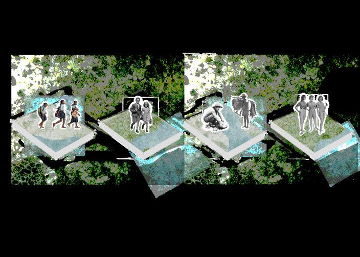 Espacios colectivos para cada programa, desde los que se observa el entorno de forma centrífuga y se agregan los elementos de este de forma centrpeta