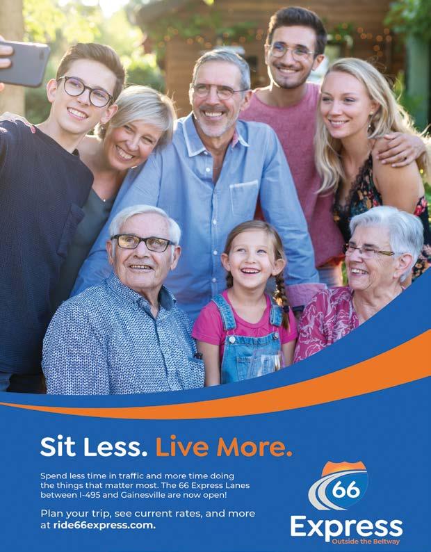 Transform Your Commute! Don’t let your commute leave you exhausted. Traffic on I-66 is back to pre-pandemic levels. But you don’t have to fight it alone in your car. OmniRide Express buses will get you to downtown D.C., the Pentagon and to Metro faster and cheaper than driving yourself. And OmniRide buses travel faster than ever now that the I-66 Express Lanes are in full operation. OmniRide.com (703) 730-6664 Bonus Half-fares! Just $3.45 one-way! 36 Haymarket / Gainesville Lifestyle MAY 2023