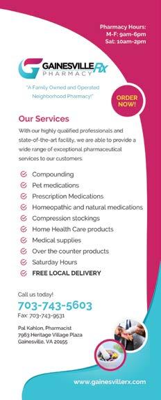 Call to Schedule your Child’s Checkup, Sports Physical & Vaccinations! Ensuring Well Checks & Sports Physicals for the Summer Lifestyle BEST 20 THE 12TH ANNUAL OF HAYMARKET/ GAINESVILLE 22 www.gainesvillerx.com COVID, Flu & Shingles Vaccines Local Honey Available CBD Products CALL US TODAY! Haymarket / Gainesville Lifestyle 35 MAY 2023