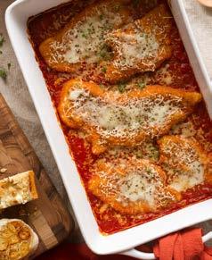 Cover cooked chicken with hot pasta sauce and cheese. Microwave to melt cheese or place in a 325 degree oven. Serve with a side of spaghetti, garlic bread and a green salad.