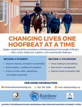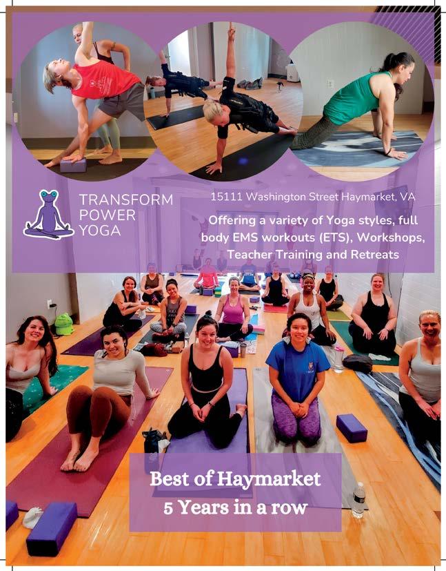 DID YOU KNOW that Laser Treatment for CANKER SORES and COLD SORES is PAINLESS and Works FAST? Ca l l T o day 571-261-2600 6468 TRADING SQUARE, HAYMARKET, VA 20169 www.AwesomeSmilesVA.com REMEMBER , NOT ALL DENTAL OFFICES OFFER LASER THERAPY. CALL TODAY FOR PAIN-FREE LASER TREATMENTS IN THE MOUTH! Lifestyle BEST THE 12TH ANNUAL THANK YOU FOR VOTING! 13575 Wellington Center Circle #105, Gainesville, VA 6755 Leaberry Way, Haymarket, VA (703) 257-5000 | gainesvilledancecenter.com A memory care neighborhood catering to the unique needs of women NOW OPEN! • All Female Residents • Award Winning Environment • Female-Focused Activities • Montessori Approach Care Program • Several studio floor plan options 16001 Loves Mill Lane • Gainesville, VA 20155 (571) 421-6966 • LegacyRidgeLiving.com Assisted Living Facility License #1104880 A MEMORY CARE COMMUNITY A MEMORY CARE COMMUNITY Woman-centric Neighborhood within the Legacy Ridge community www.burnbootcamp.com/gainesville-va Haymarket / Gainesville Lifestyle 39 MAY 2023
