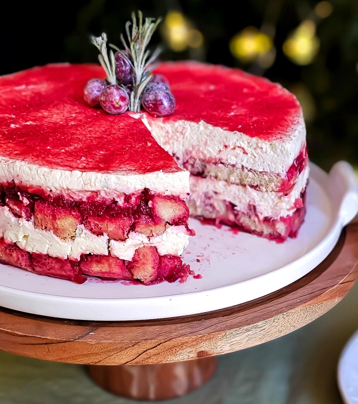 Iam a firm believer that the most enjoyable and memorable holiday celebrations employ a savvy combination of heirloom tradition with a sprinkle of novelty. Winter Cranberry-Orange Tiramisu reads like storybook winter comfort with a delicious twist of elegance and intrigue. Alternating layers of glossy jewel-toned compote glimmer like a crimson holiday ornament sandwiched between fluffy white mascarpone cream. Its richness in flavor and texture is balanced by a bright, sweet, tart, fruit-forward profile highlighting two of the season’s most recognizable fruits. It’s a vibrant holiday departure from the classic coffee-flavored dessert.