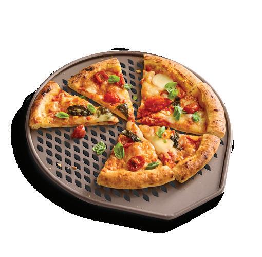 Get crispy, pizzeria-style crust in your small oven or toaster oven. The raised edge makes sliding pizzas stress-free. #101337 P. 42