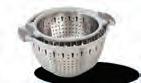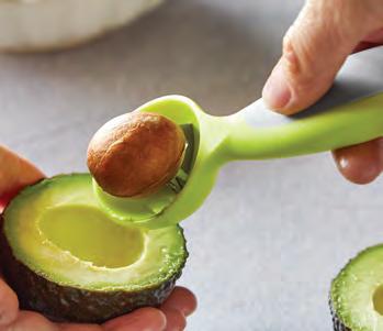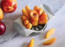 The stainless steel blades easily cut through the fruit, while the serrated center blade separates the pit. Fits foods up to 3½" (9‑cm) diameter. #100834 $39
