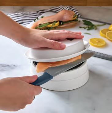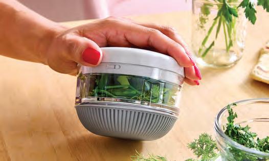 Effortlessly mince herbs, garlic, onions, and more. Just load, lock, twist, and roll to quickly prep ingredients. The space saving design fits in most kitchen drawers. #101396 $44