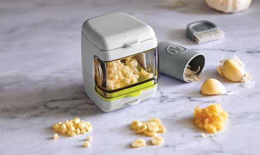 Add different levels of garlic flavor to recipes with this all-in-one tool. Slice, dice, paste, and even peel garlic without dirtying your hands. Includes a cleaning brush. #100908 $46