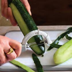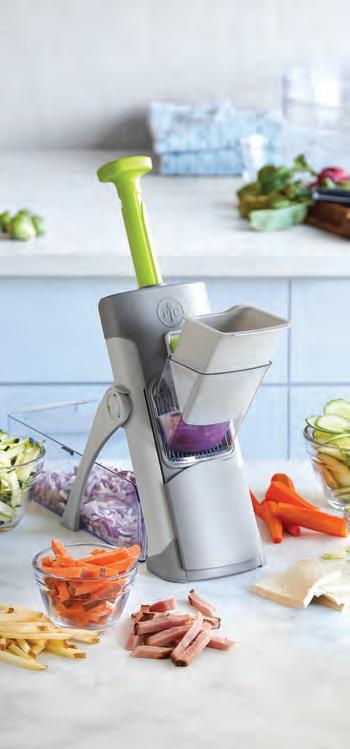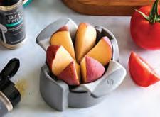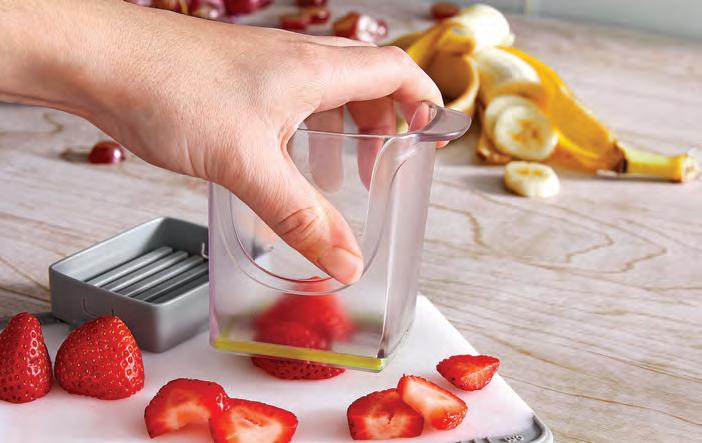 Enjoy a fresh snack fast! Place soft fruits or vegetables on a cutting board and press down to quickly fill the cup with fresh slices. Pour your slices into a bowl for easy snacking or add to salad, stir-fry, and more. Includes a blade cover. #100860 $32
