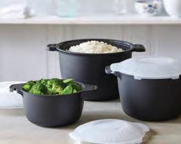 Cook vegetables, rice, and pasta, and heat soup, butter, chocolate, and leftovers. Includes 3-qt. (3-L) Micro-Cooker ® Plus (not sold separately), 2-qt. (2-L) Micro-Cooker ® (p. 60), and 1-qt. (1-L) Micro-Cooker ® (not sold separately).