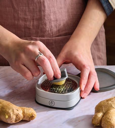 This compact, all-in-one tool lets you zest in any direction with less mess. When you’re done, turn the base and the wiper arm sweeps ingredients off the back of the blade into the base. Perfect for citrus, chocolate, ginger, horseradish, and hard cheese. Refrigerator-safe. Includes a lid for storage. Stainless steel blade. ¼-cup (60-mL) capacity with measure markings. #101235 $25