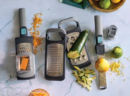 Finely or extra coarsely grate ingredients. Includes a 2-cup (500-mL) food container with measurement markings. #100472 $75