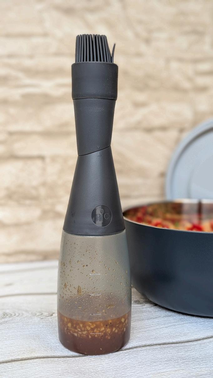 Marinade in die Marinierflasche mit Pinsel füllen und das Geflügel, Fleisch, Lachs oder Garnelen damit bestreichen 4