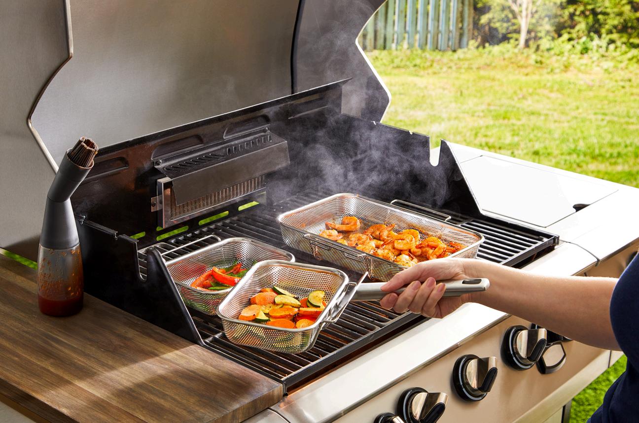 Einer für alle: Klassisches Grillgut, kleinere und delikate Lebensmittel wie Fisch, Garnelen, Grillkäse und Zucchinischeiben, aber auch Obst, Pizza oder sogar ein Frühstück mit Spiegelei, Speck und Tomaten können gegrillt werden.