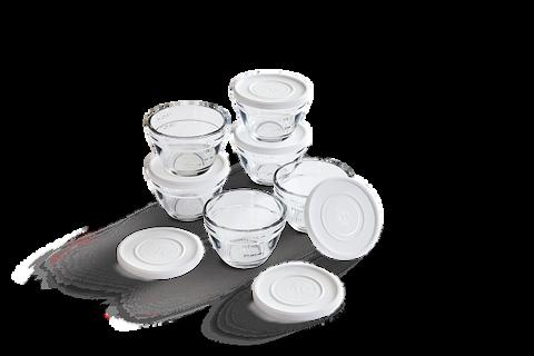 Die Deckel lassen sich am Rand der Schüssel einhängen und haben eine integrierte, herausnehmbare Löffelablage So bleibt alles schön sauber.