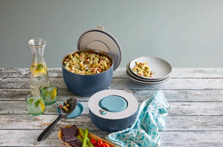 Die Schüsseln halten dein Essen dank ihres doppelwandigen Designs länger kühl oder warm als ein herkömmlicher Behälter
