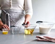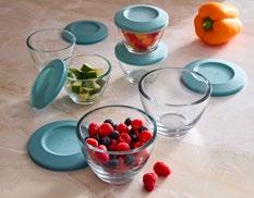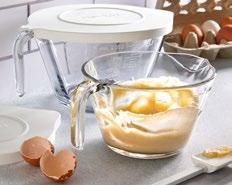 • Mit diesen Schüsseln aus gehärtetem Glas kannst du Zutaten vorbereiten, Reste aufbewahren, Butter schmelzen und sogar kleine Kuchen backen.