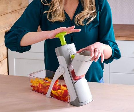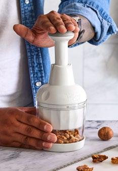 A. Elektrischer Multi-Zerkleinerer „Up & Down“ Die Edelstahlklingen rotieren und bewegen sich gleichmäßig auf und ab, sodass du perfekte, homogene Ergebnisse erhältst. Die Schüssel hat genau die richtige Größe für die Zubereitung einer Portion Salsa oder Guacamole. Verarbeite Lebensmittel wie Obst, Gemüse und Kekse. Die Pulse-Einstellung ermöglicht eine genaue Kontrolle über die Konsistenz und die Start-Einstellung zerkleinert deine Lebensmittel schnell und fein. Der Deckel verfügt über eine Öffnung, durch die du während des Betriebs langsam Öl oder Flüssigkeiten hinzugeben kannst, die dann gleichmäßig untergemischt werden. Fassungsvermögen: 600 ml. Die WEEE Nummer findest du auf der Rückseite des Katalogs. #101489 l Ausgewählte Teile