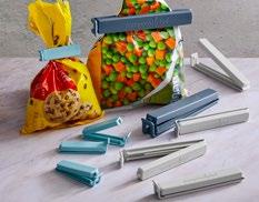 Nutze diese Clips, um Beutel zu verschließen, im Kühl- oder Gefrierschrank aufzubewahren, in der Mikrowelle zu erhitzen oder in Wasser zu kochen. 10er-Set: zwei große Clips à 14 cm, vier mittlere Clips à 11 cm, vier kleine Clips à 5,5 cm. #100843