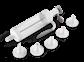 D. Deluxe Air Fryer Spieße Grille bis zu acht Spieße im Deluxe Air Fryer. Das flache Design der Spieße hält die Lebensmittel an ihrem Platz, um sie von allen Seiten zu grillen. Enthält acht Spieße, eine Drehspießstange und zwei Drehspieß-Räder. Edelstahl. 20 cm. #100285